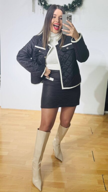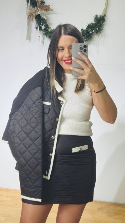 Black Puffer Kapitone Skirt