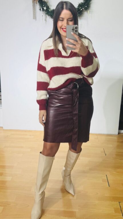 Original price was: 189,00 €.119,00 €Η τρέχουσα τιμή είναι: 119,00 €.Bordeaux Leather Skirt LUMINA