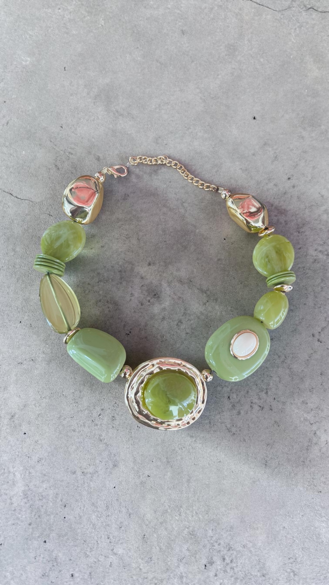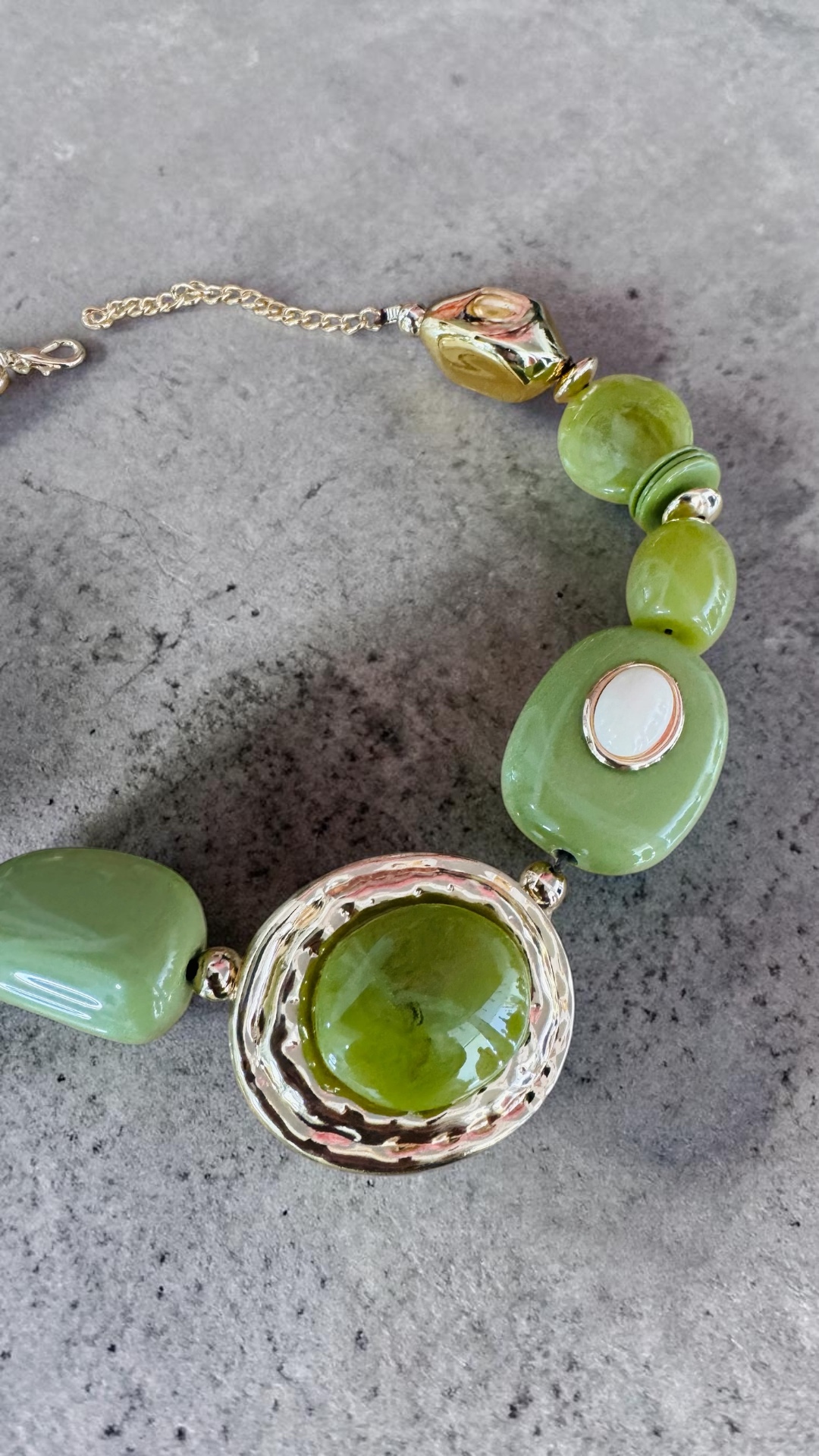 Koλιέ από κρυστάλλινες πέτρες στο χρώμα της ελιάς
