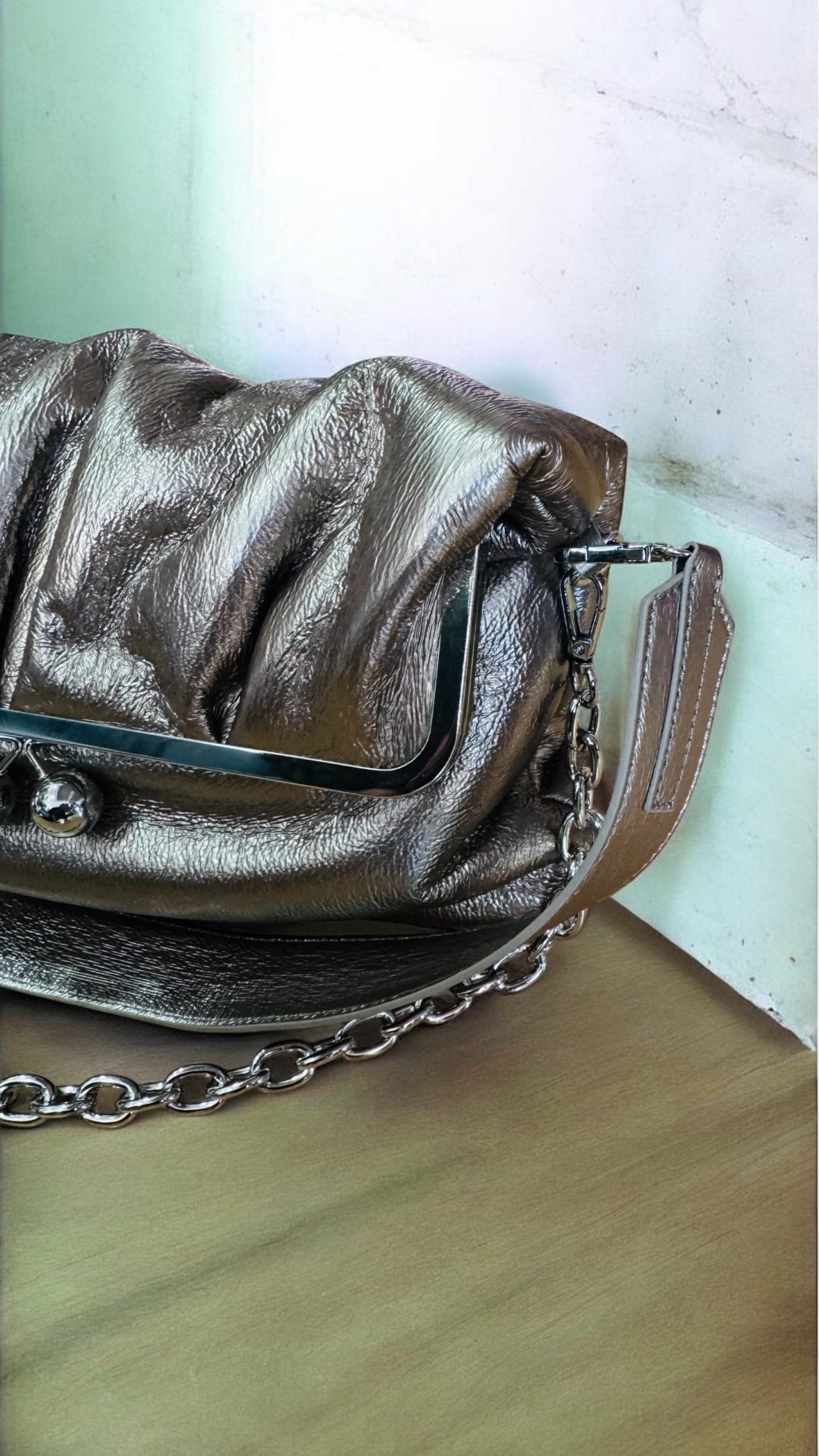 Tσάντα από οικολογικό δέρμα , clutch και μεταλλικές λεπτομέρειες.
