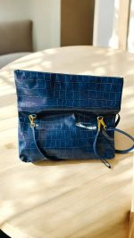 Κροκό φάκελος από οικολογικό δέρμα με δύο αποσπώμενα λουράκια για να κρατιέται χειρός ή ώμου.