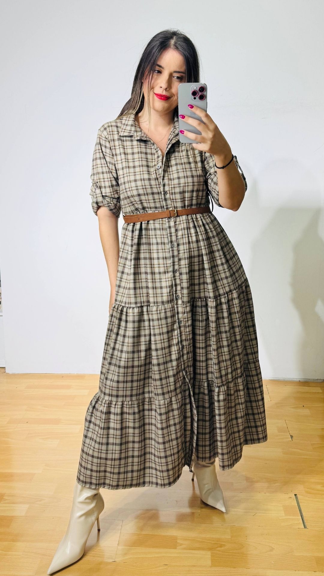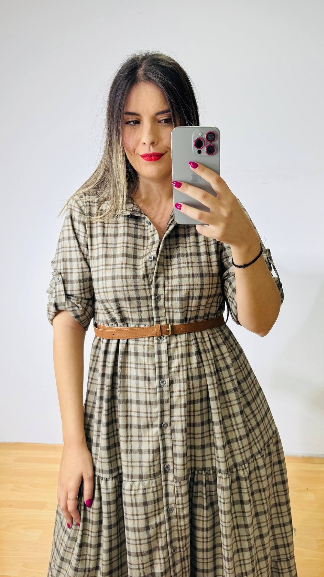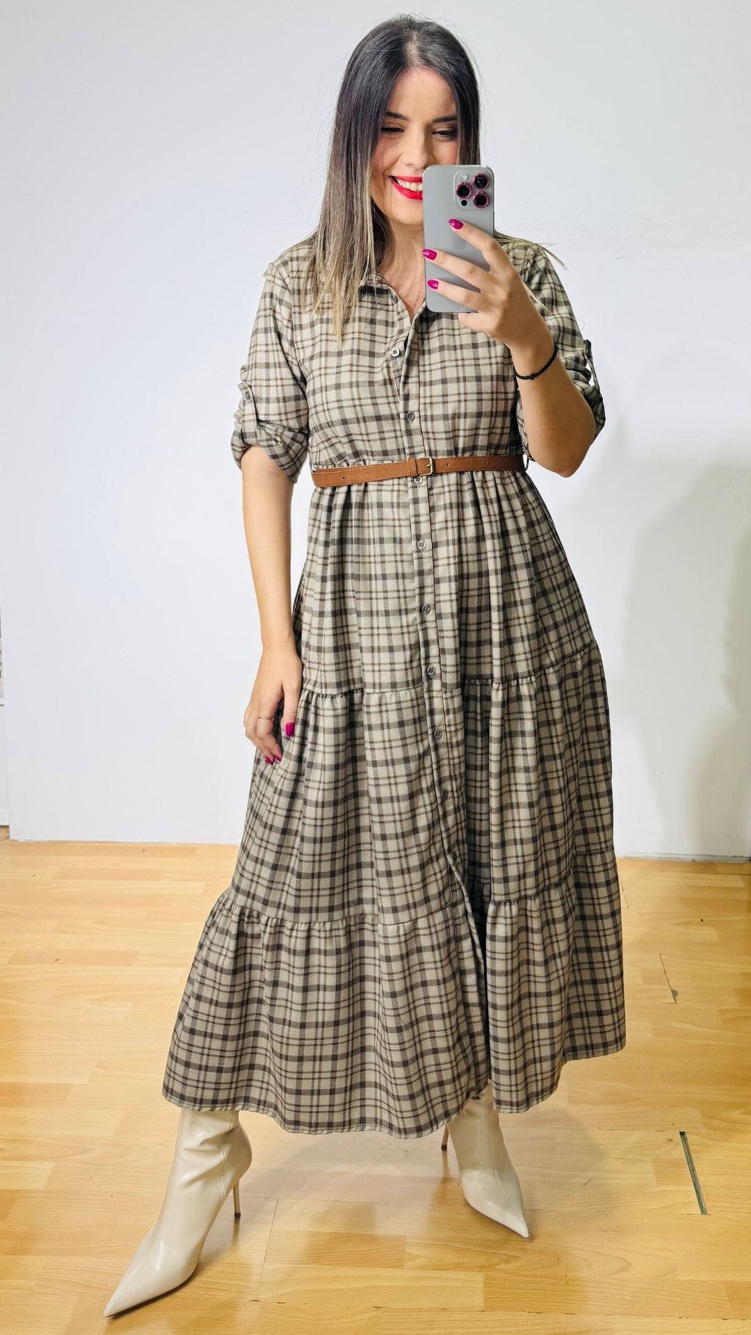 Φόρεμα σεμιζιέ με κουμπάκια κατά μήκος, ρυθμιζόμενα μανίκια