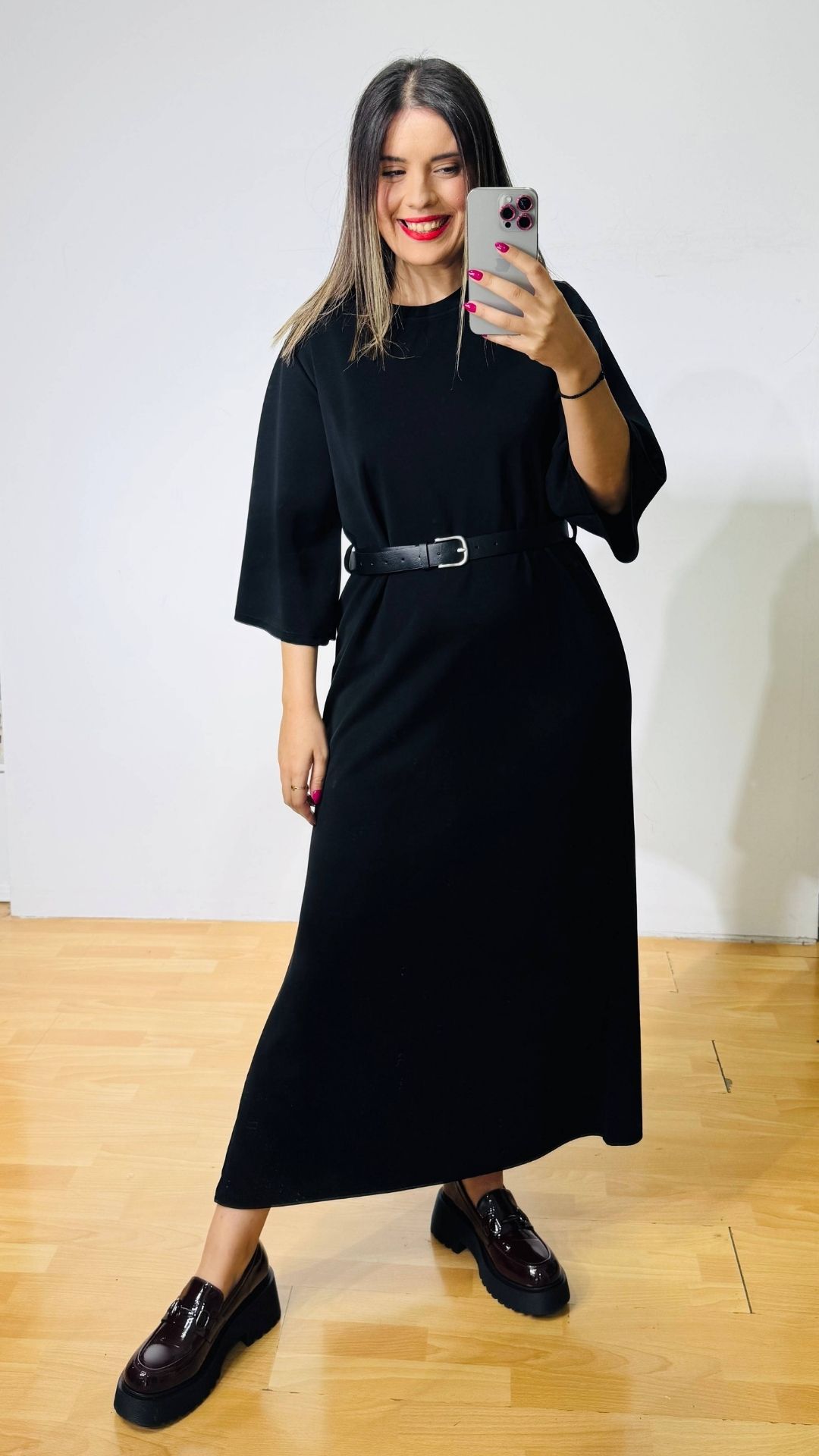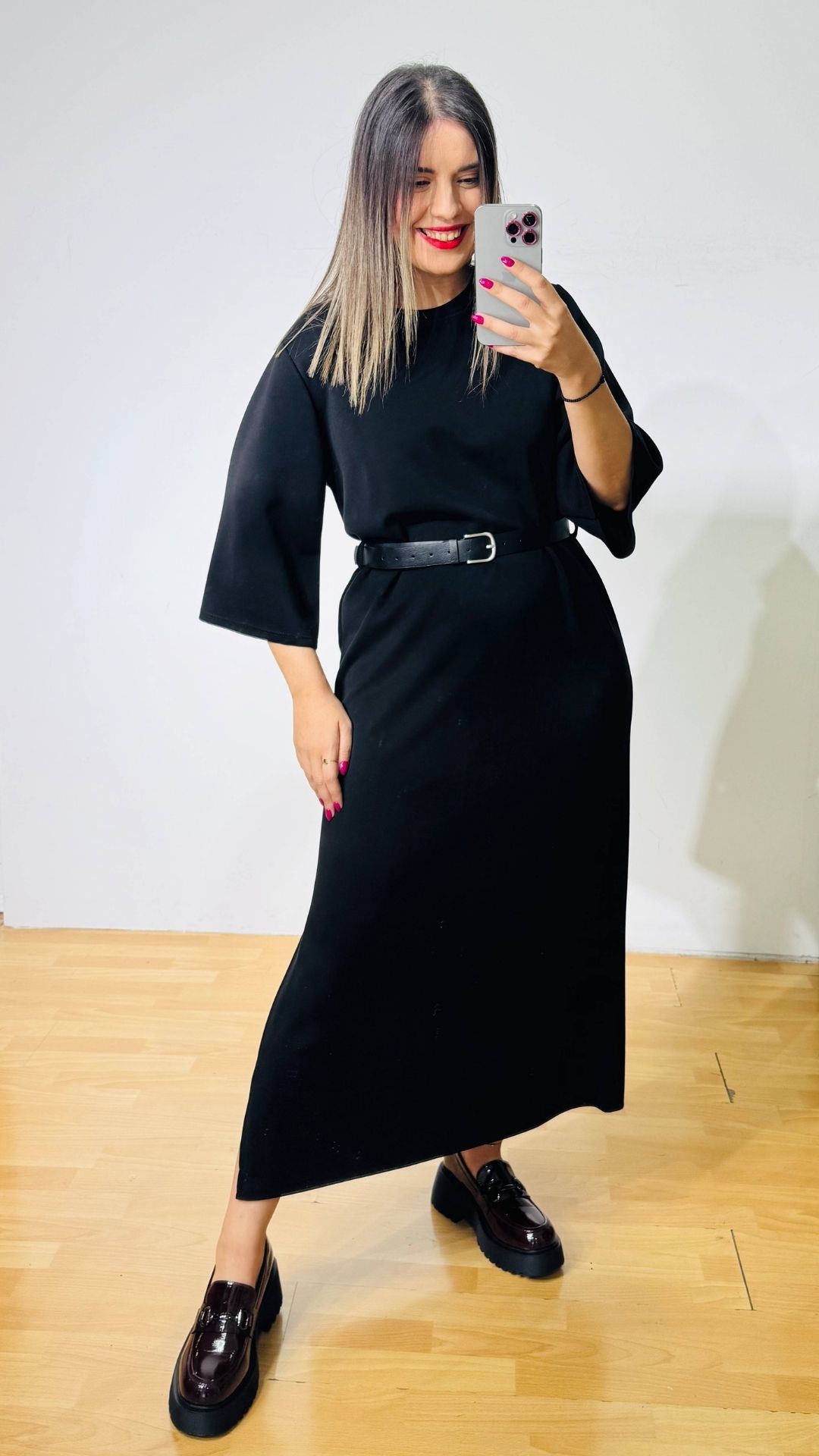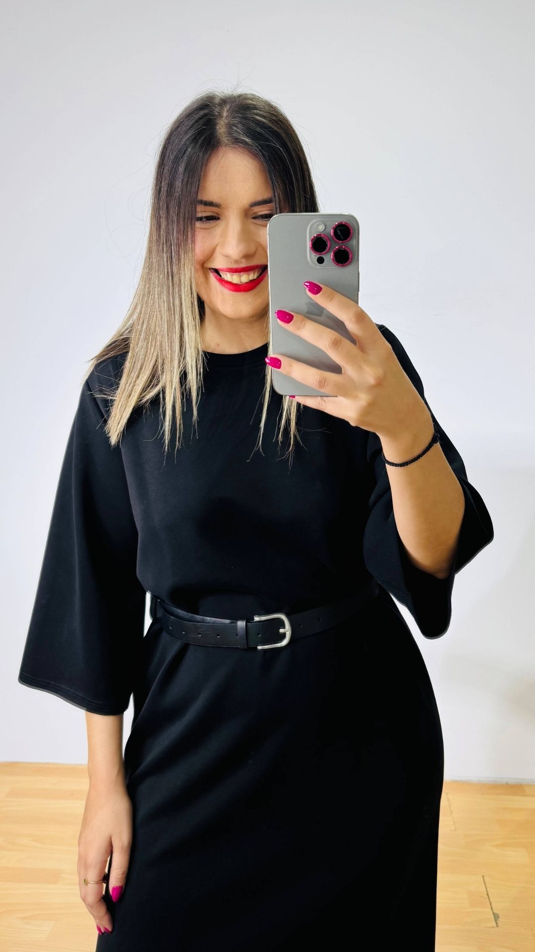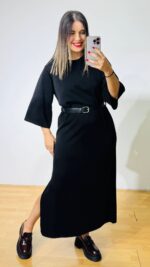 Φόρεμα μαλακό σαν βούτυρο με διακριτικά ανοίγματα στο πλάι και δερμάτινο ζωνάκι αποσπώμενο.