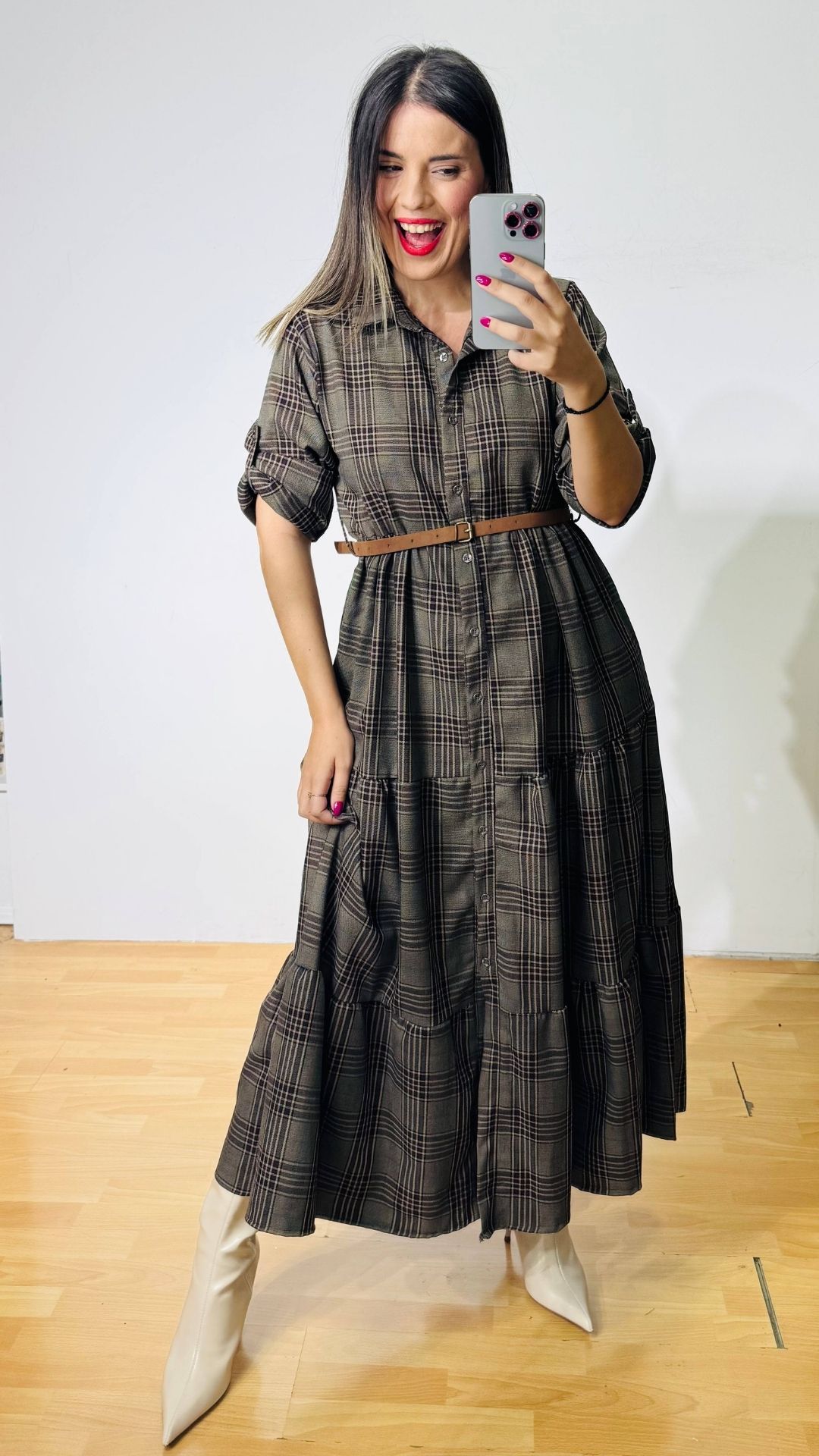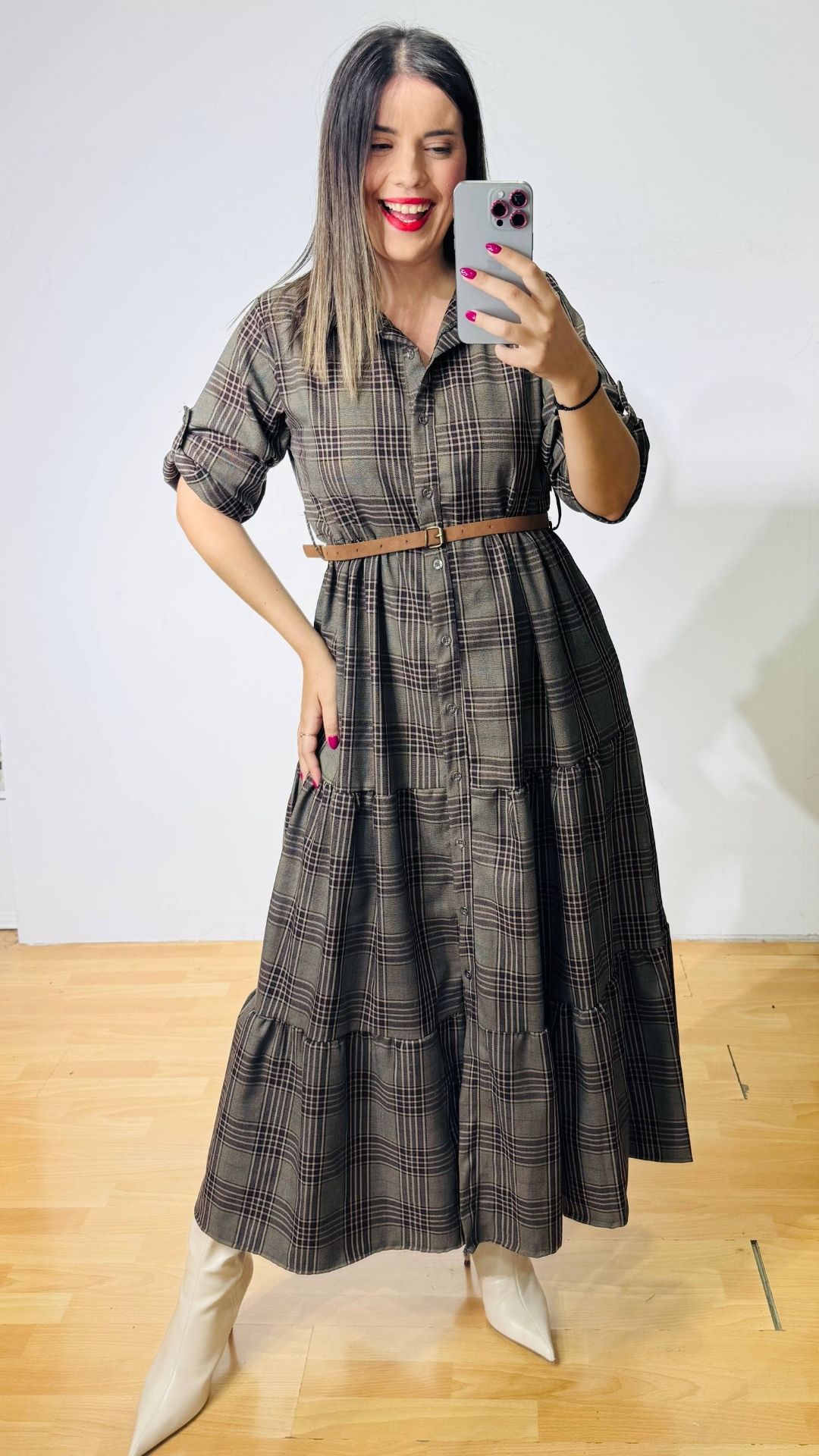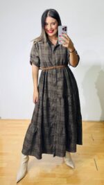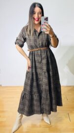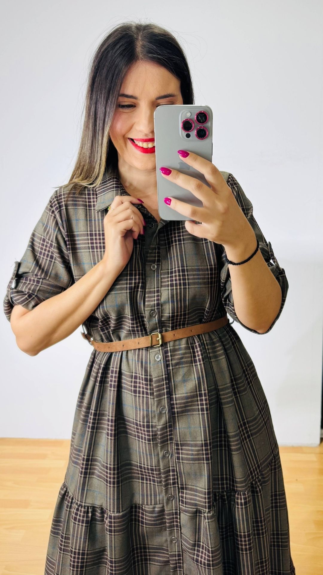 Φόρεμα σεμιζιέ με κουμπάκια κατά μήκος, ρυθμιζόμενα μανίκια