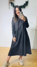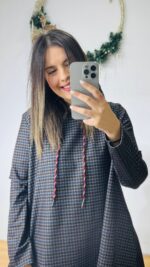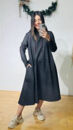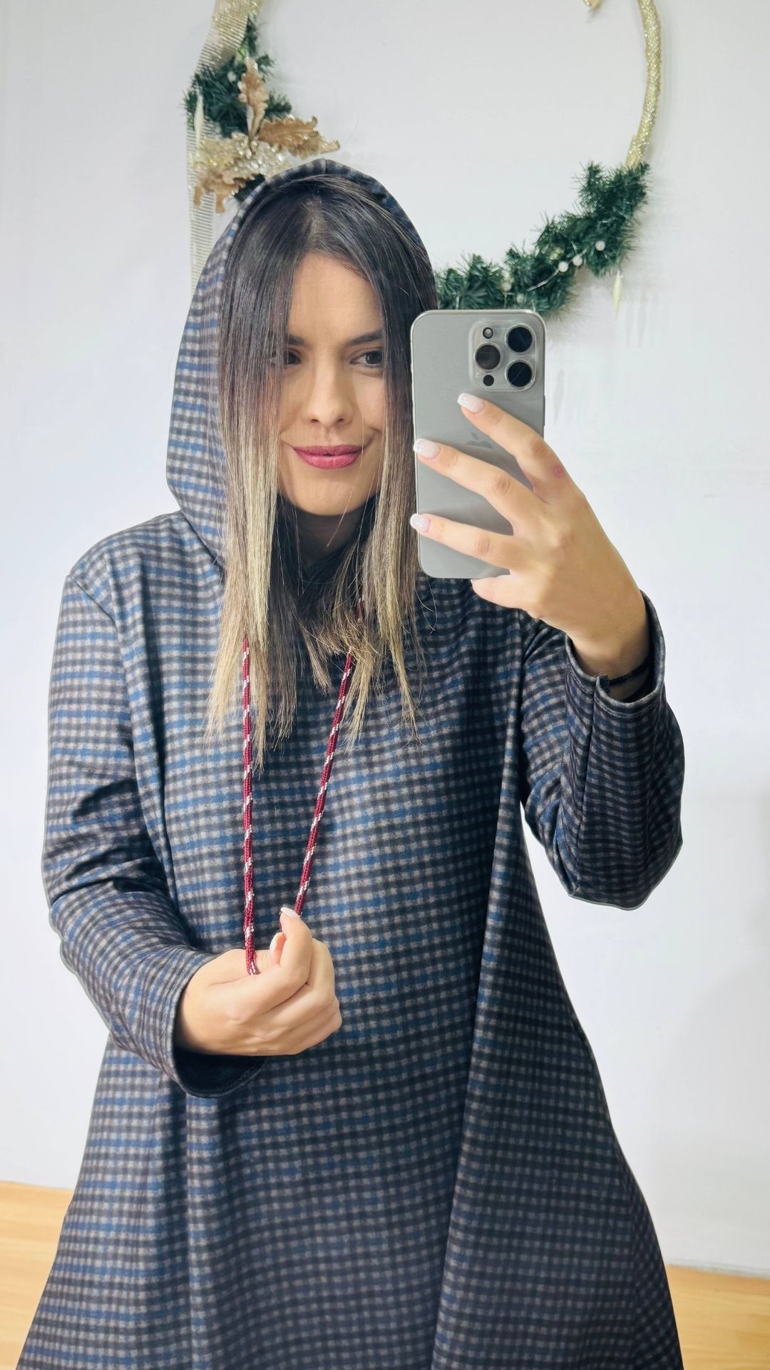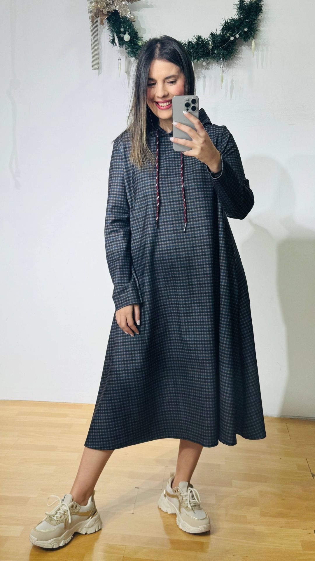 Φόρεμα φούτερ. Διαθέτει κουκούλα και πλαινές τσέπες.