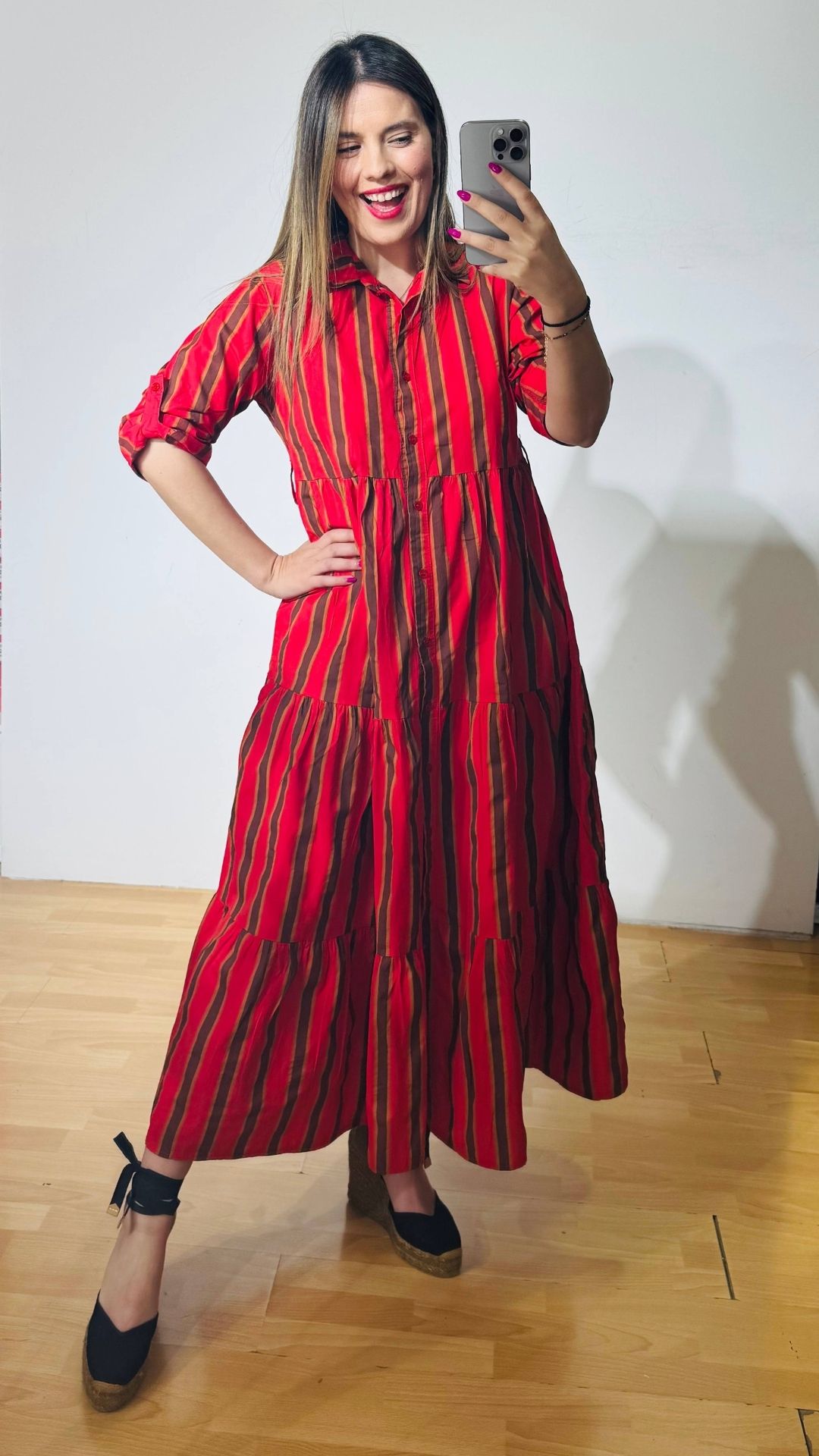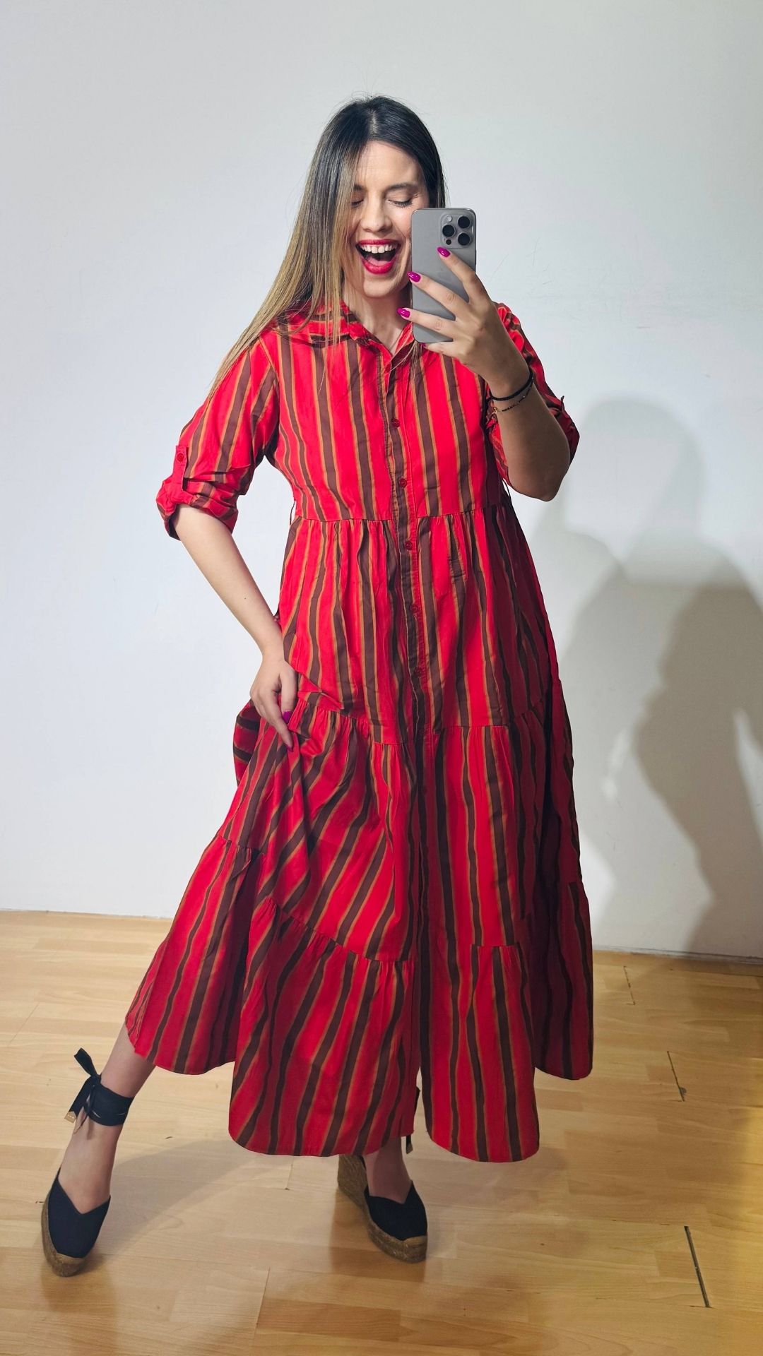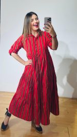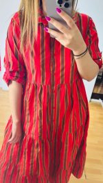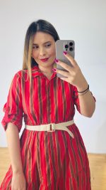Φόρεμα από βαμβακερή ποπλίνα σεμιζιέ (κουμπάκια κατα μήκος), διαθέτει ρυθμιζόμενα μανίκια και extra αποσπώμενο ζωνάκι – ιμάντα.
