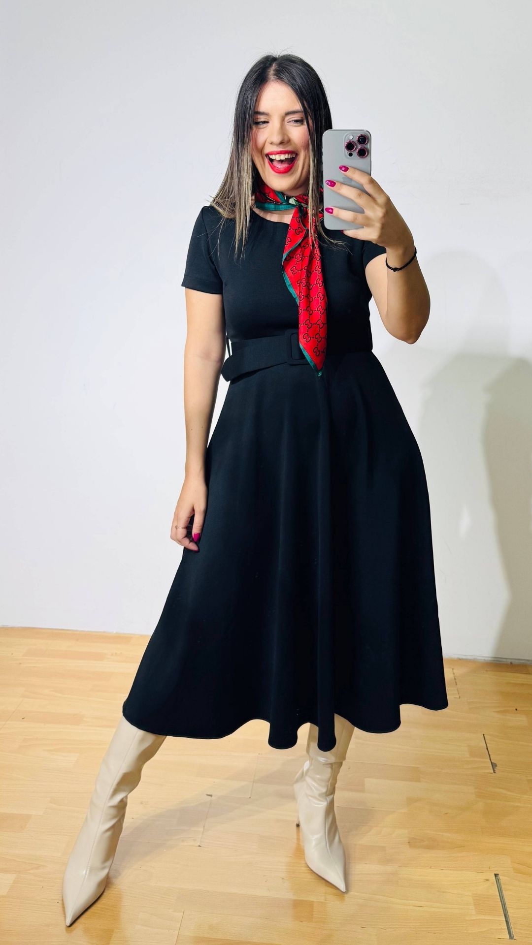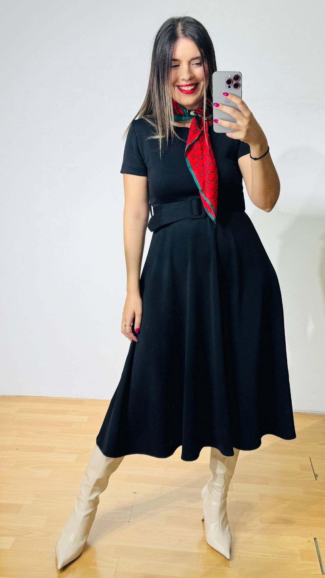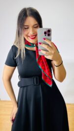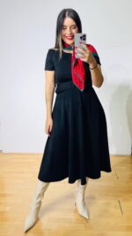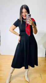 Φόρεμα Midi από ελαστική ποντοστόφα σε ρετρό στυλ. Διαθέτει ασορτί αποσπώμενη ζώνη. Κλείνει με φερμουάρ στην πλάτη