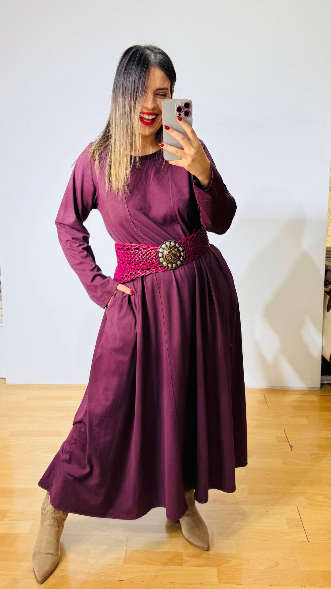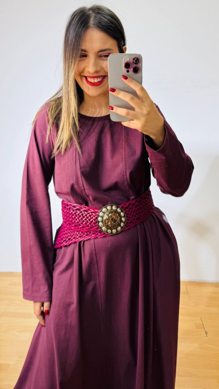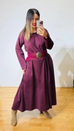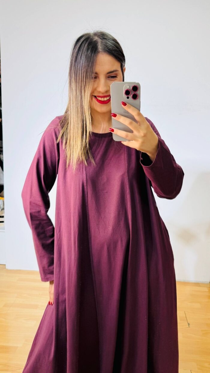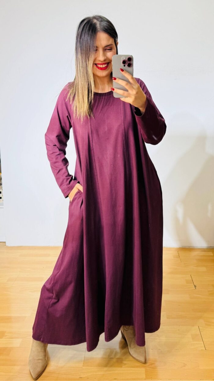 Μακρυ βαμβακερό φόρεμα μωβ – μελιτζανί σε loose αέρινη γραμμή.