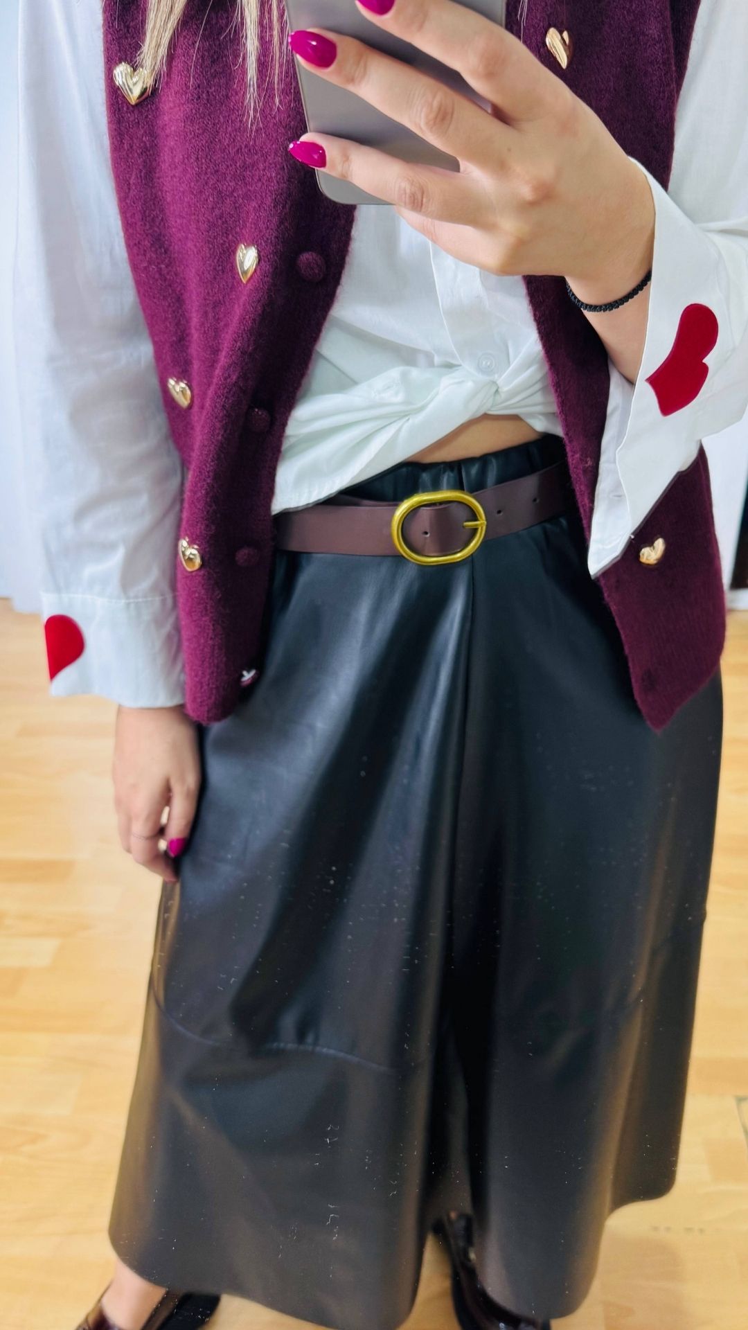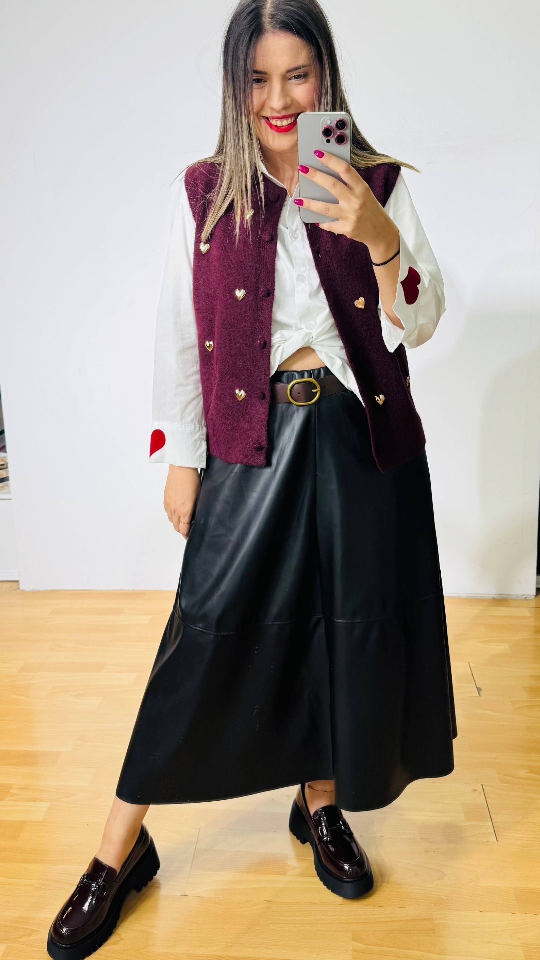 Φούστα retro από οικολογική δερματίνη με λάστιχο στην μέση και extra δερμάτινο ζωνάκι με μεταλλική αγκράφα