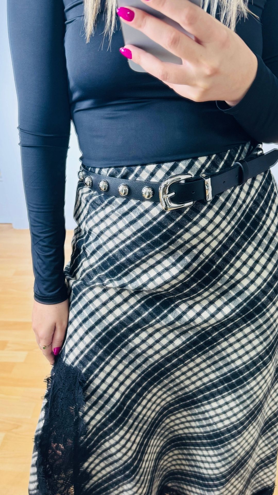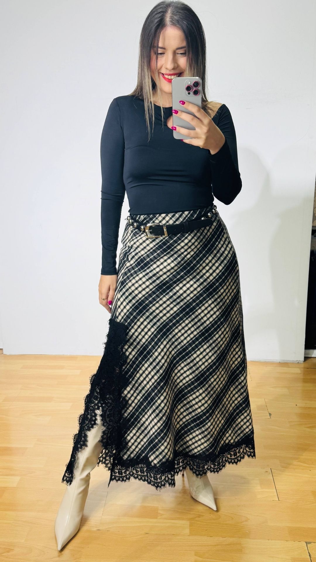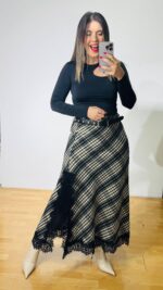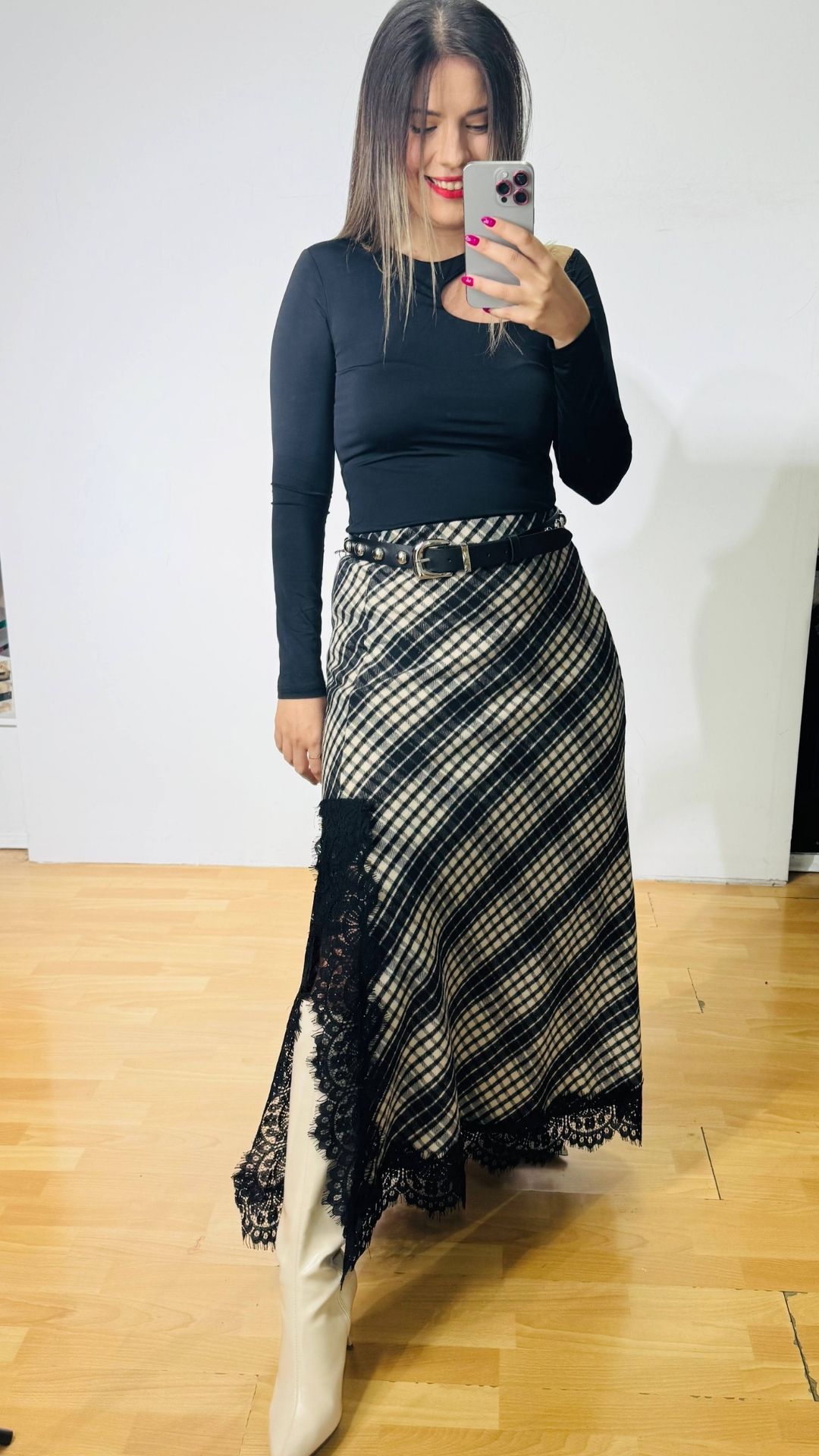 Φούστα βαμβακερή σε άλφα γραμμή με εσωτερικό κρυφό λάστιχο στην μέση και δαντέλα περιμετρικά στο τελείωμα