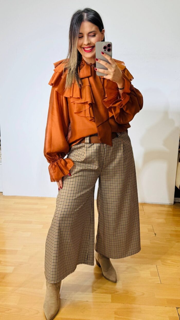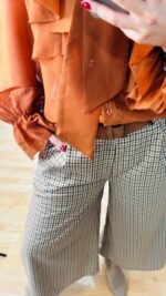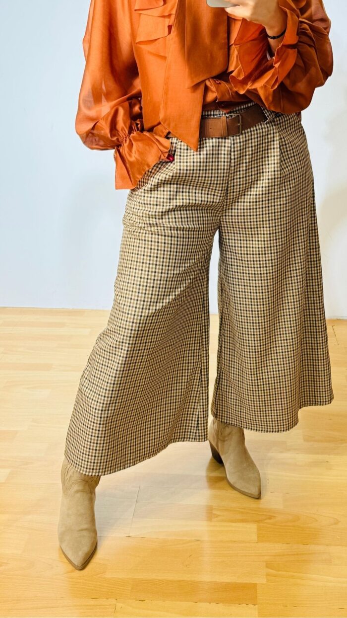 Παντελόνα ζιπ κιλότ με λάστιχο στην μέση , αποσπώμενη suede ζώνη και πλαινές τσέπες.