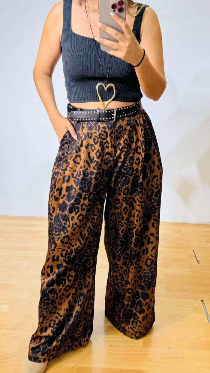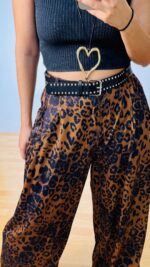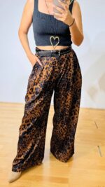 Παντελόνα σατινέ silky touch λεοπρα με πλαινές τσέπες. Διαθέτει extra δερμάτινο ζωνάκι με τρουκς