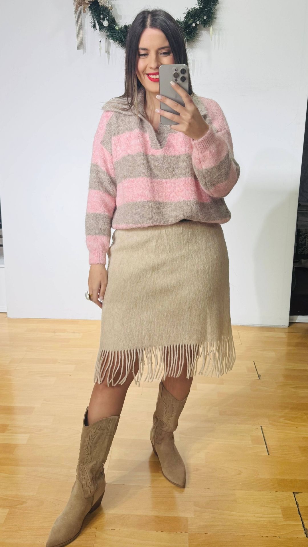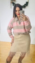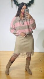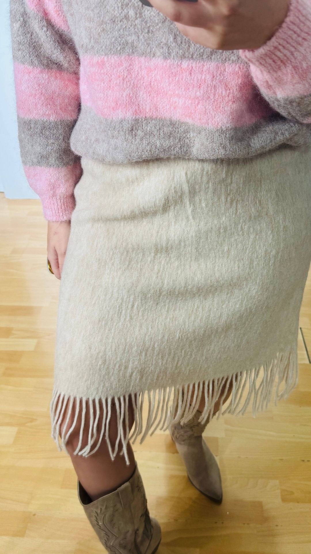 Φούστα wool με λάστιχο μπάσκα στην μέση και κρόσια στο τελείωμα