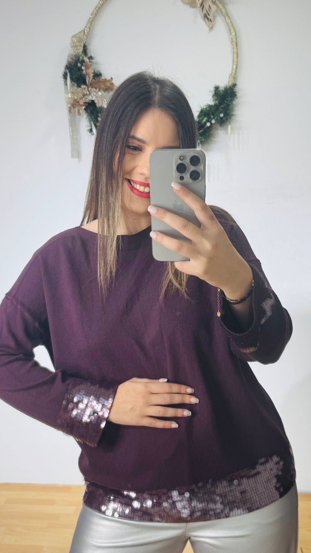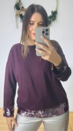 Πλεκτό κασμίρ πουλοβεράκι με χαμόγελο και διακοσμητικές διάφανες παγέτες
