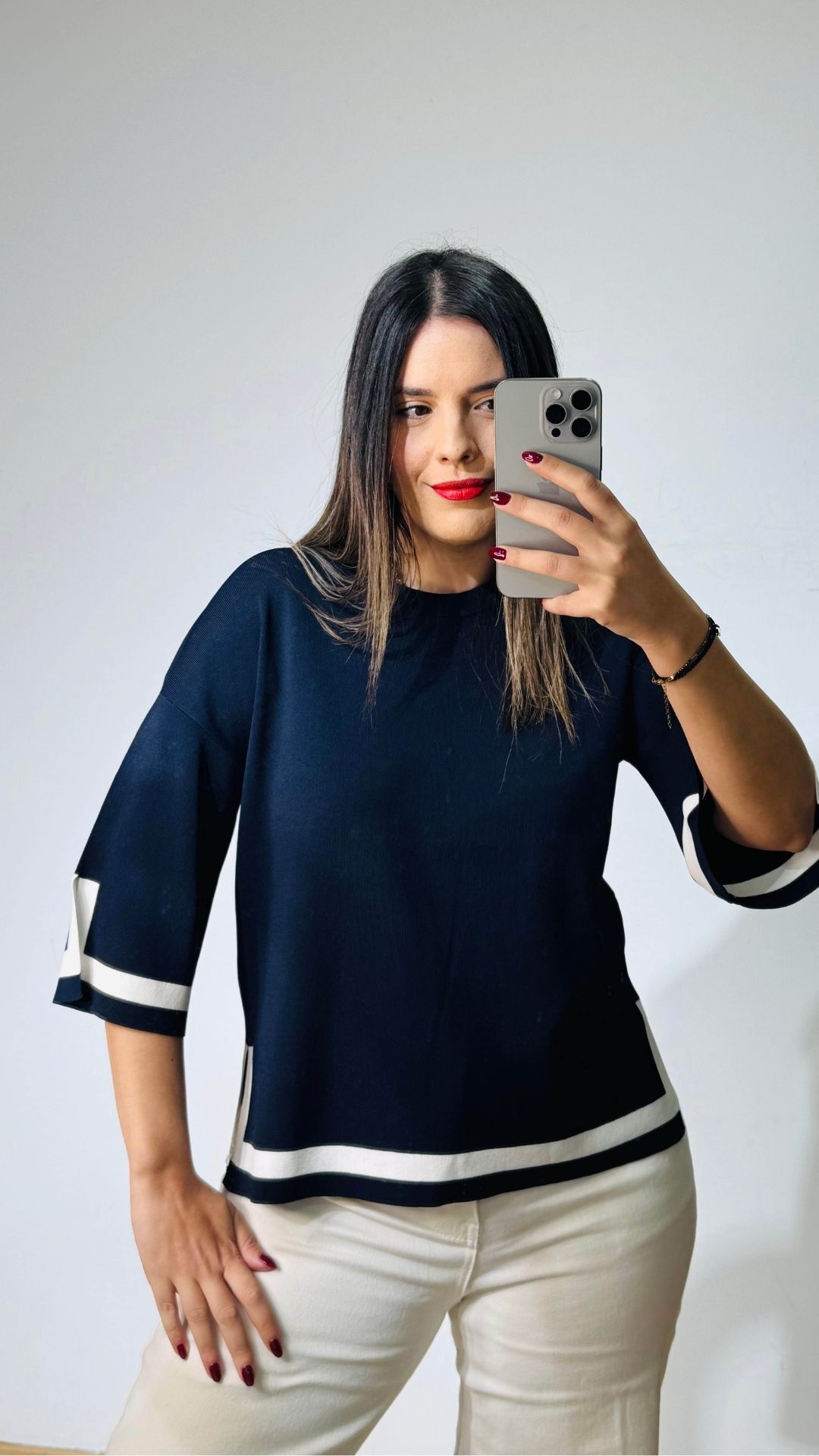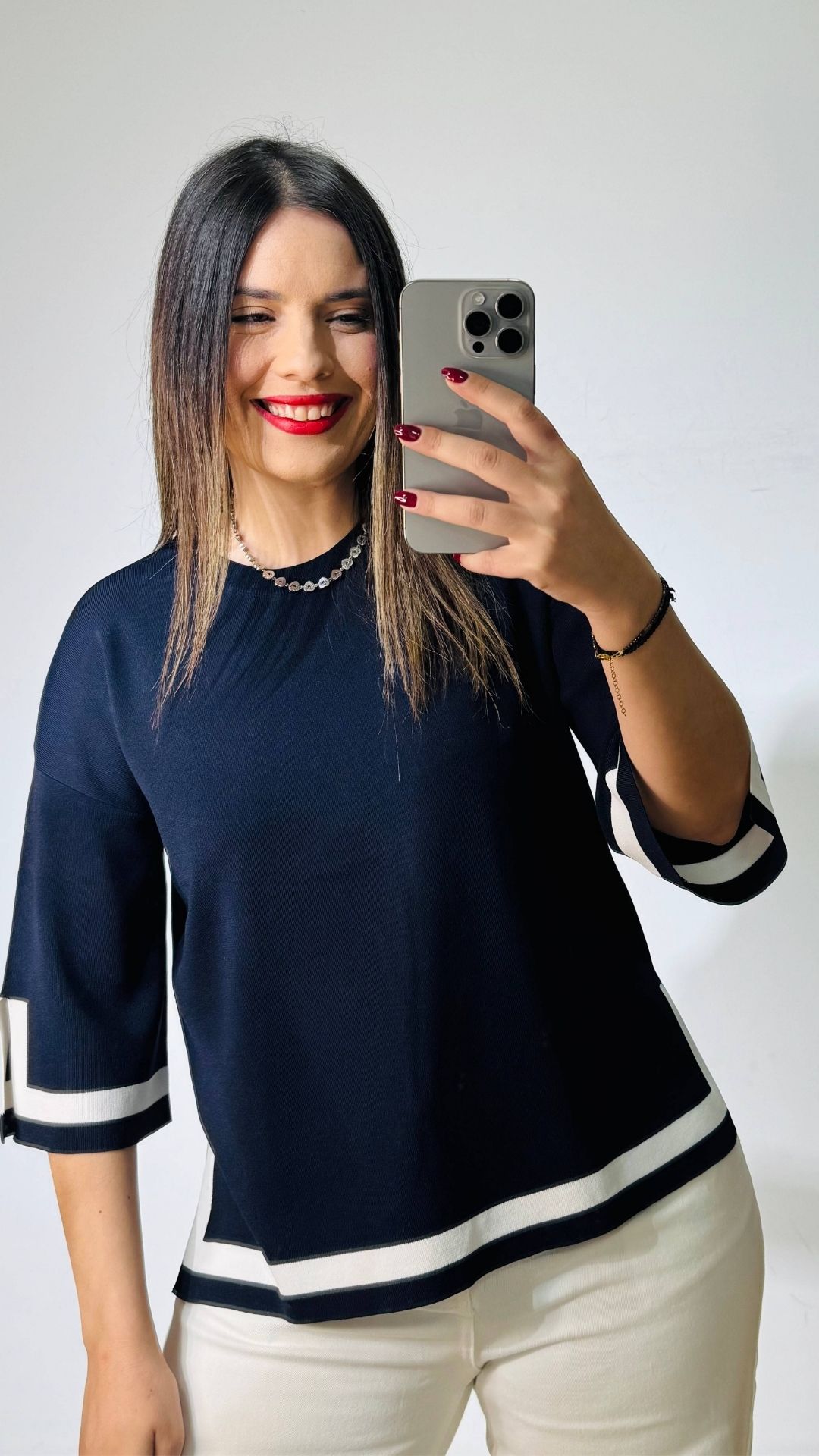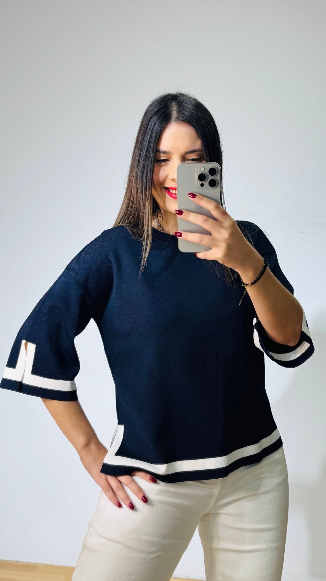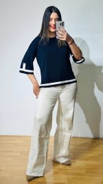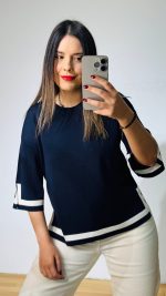 Μπλούζα λεπτό πλεκτό μερσεριζέ με τρουακάρ μανίκι και ανοιγματα στα μανίκια και στο τελείωμα