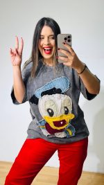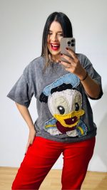 Πετροπλυμένο βαμβακερό T-shirt με χειροποίητο σχέδιο και διάσπαρτες παγέτες