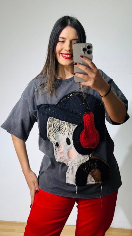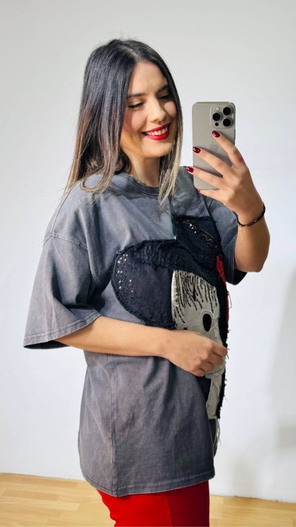 Πετροπλυμένο βαμβακερό T-shirt με τύπωμα