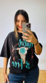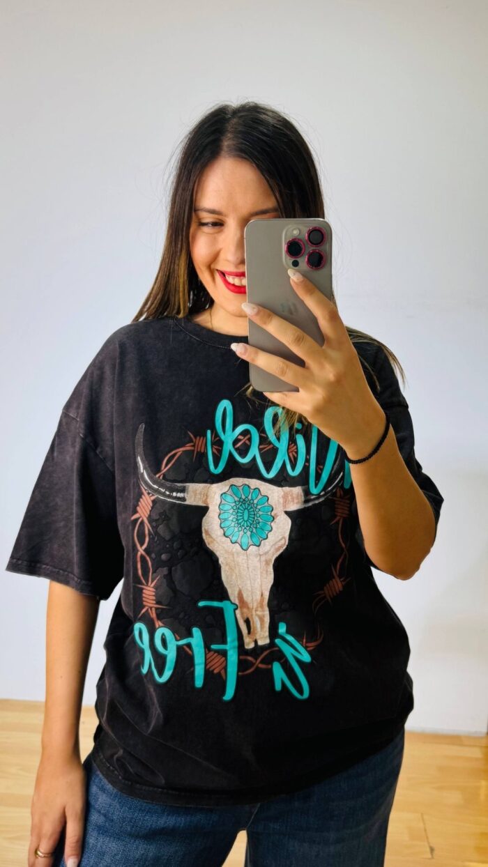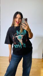 Bαμβακερό t-shirt με τύπωμα πετροπλυμμένο σε άνετη γραμμή