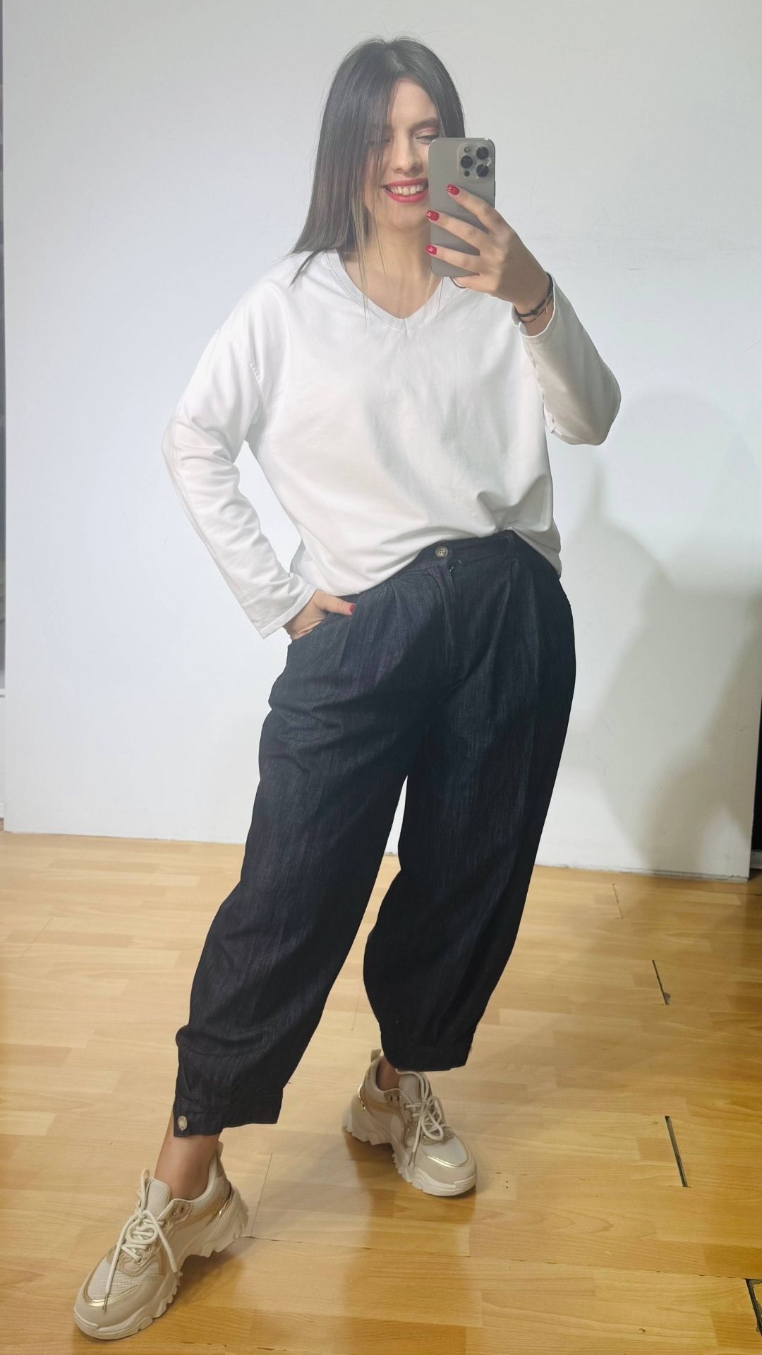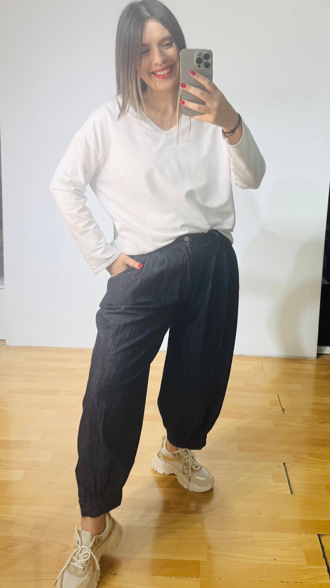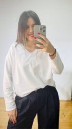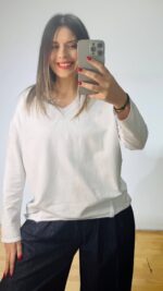 Βαμβακερό φουτερ με “v” και διακριτικές ραφές στο μπροστινό μέρος.