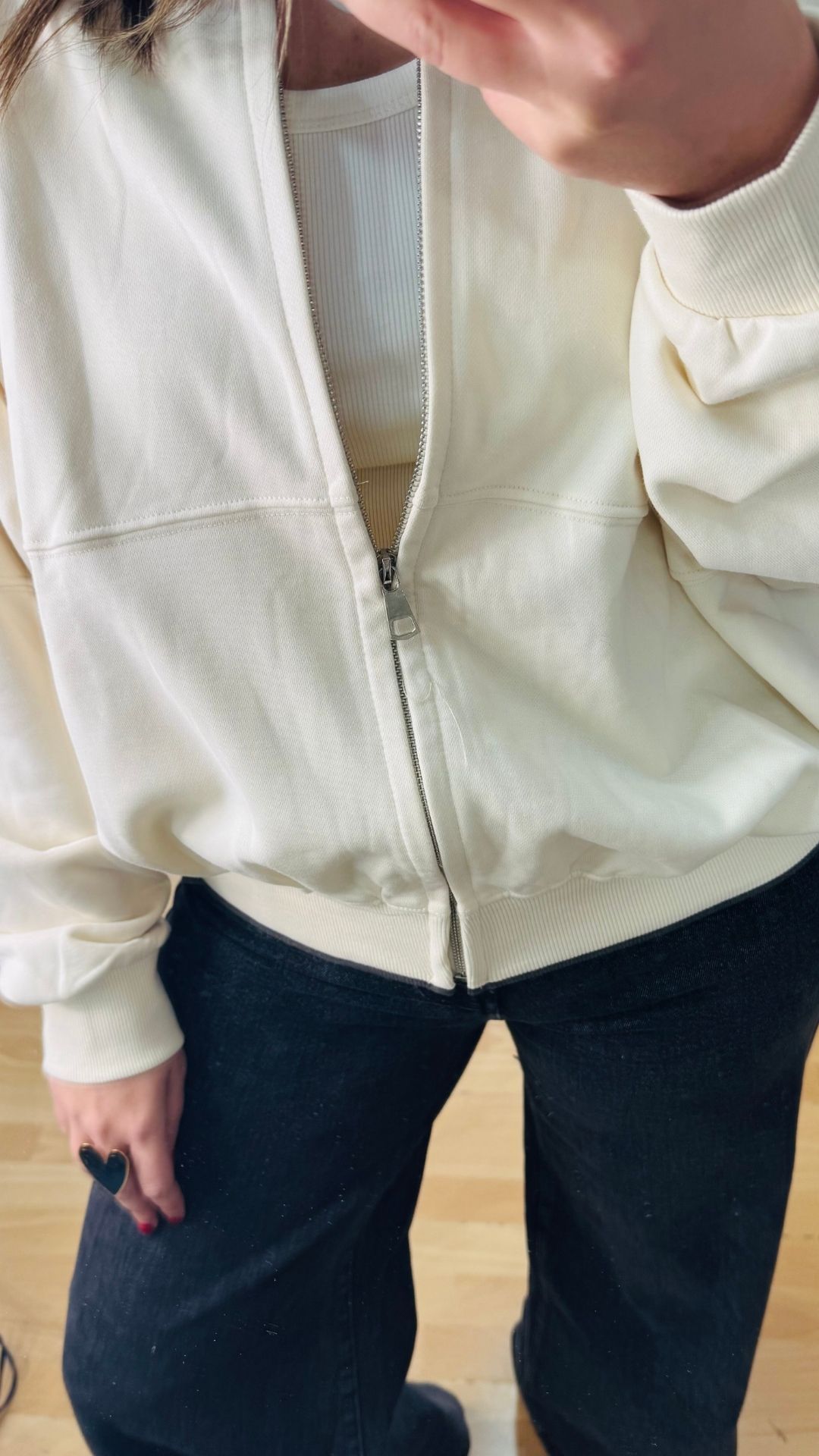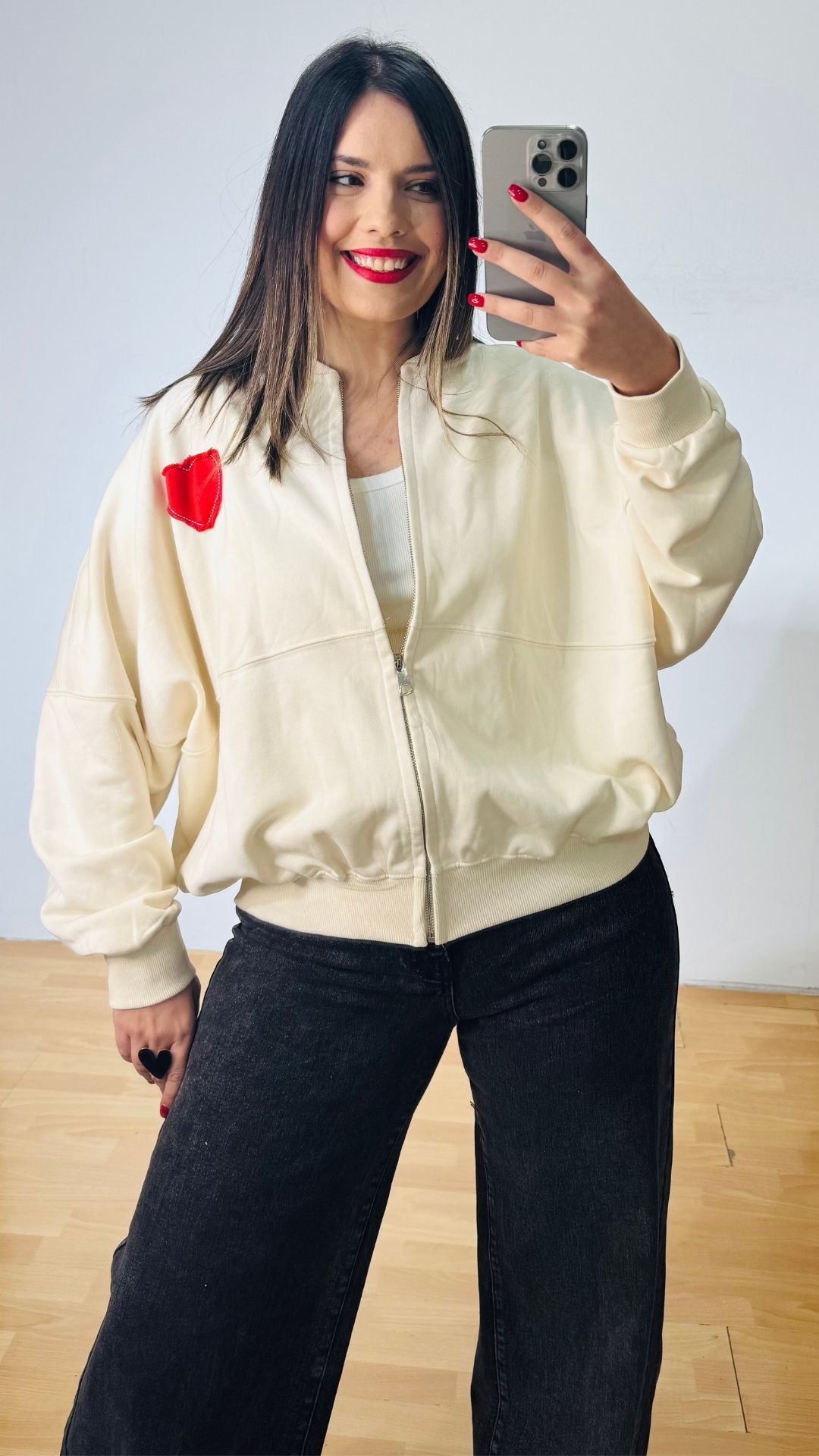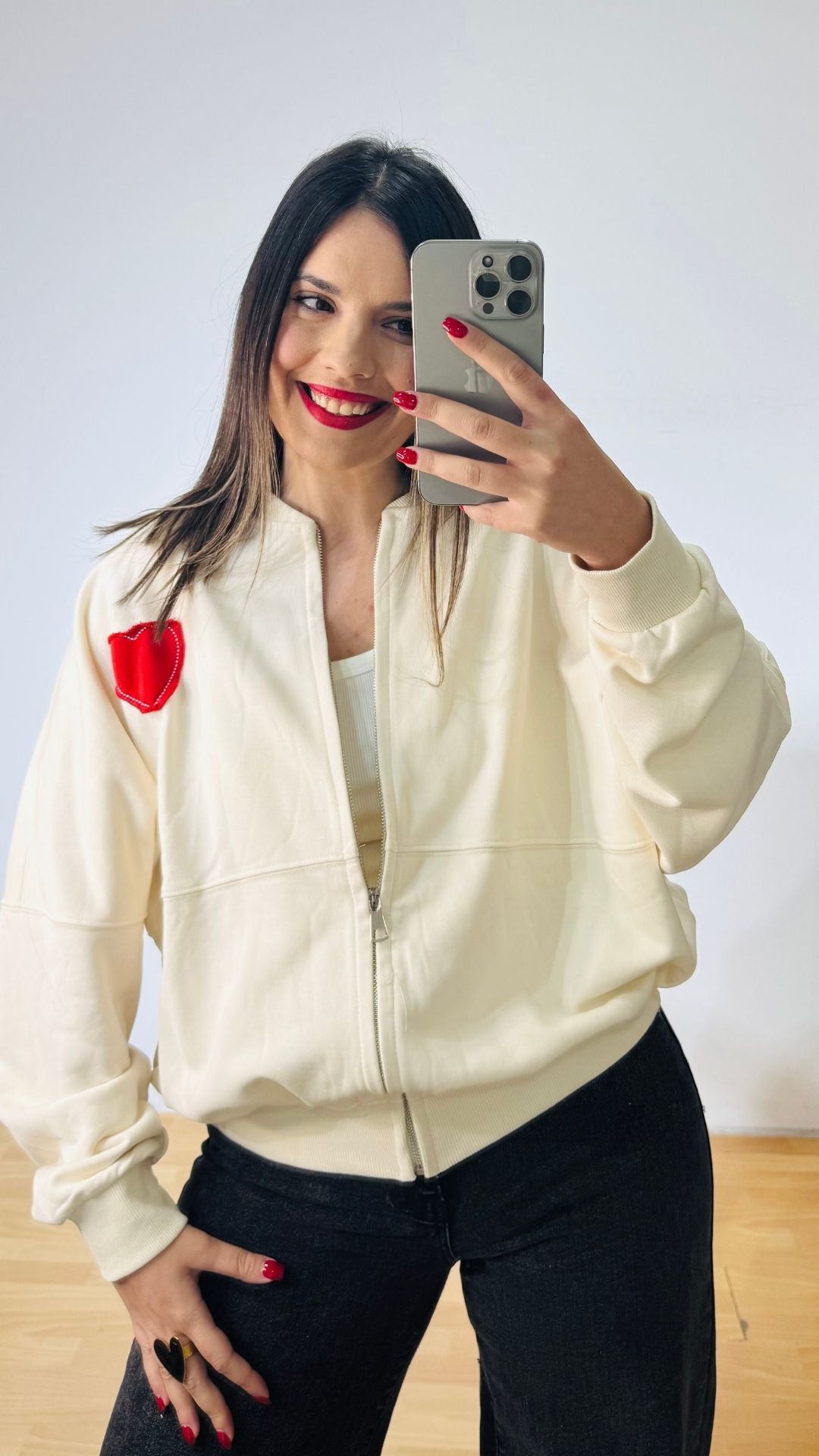 Φούτερ βαμβακερή ζακέτα. Κλείνει με φερμουάρ. Διαθέτει χειροποίητα σχέδια στο μπροστινό μέρος και στην πλάτη