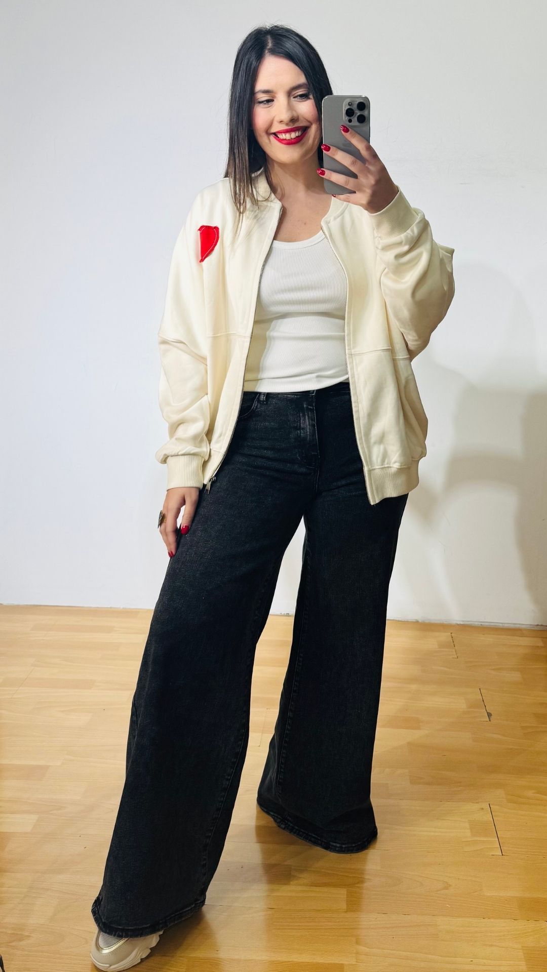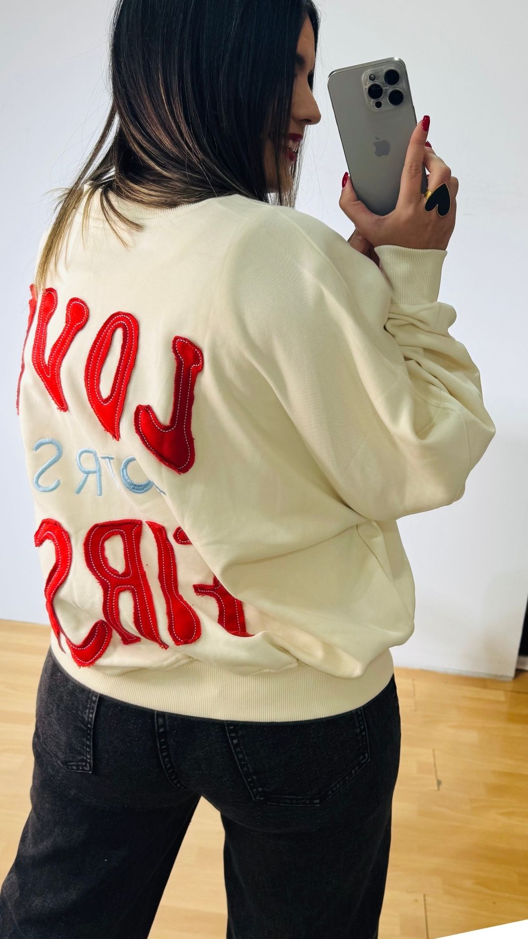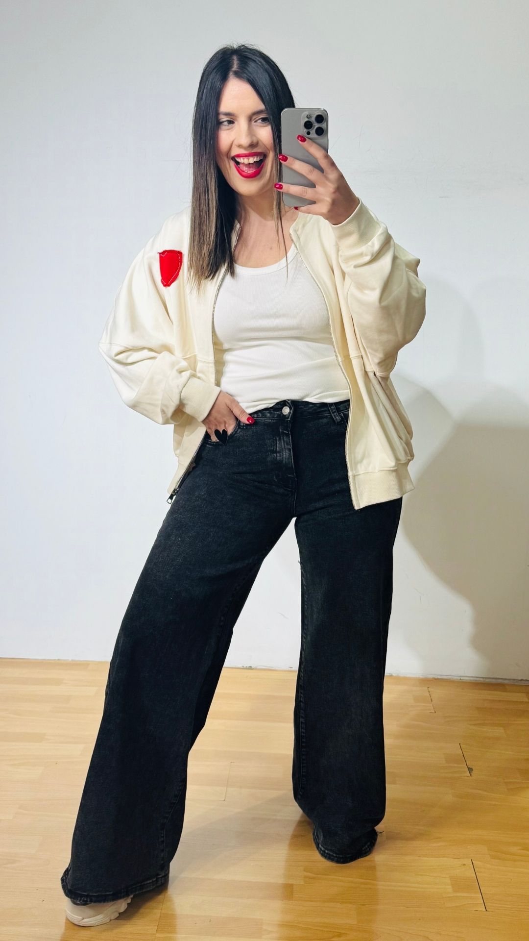 Φούτερ βαμβακερή ζακέτα. Κλείνει με φερμουάρ. Διαθέτει χειροποίητα σχέδια στο μπροστινό μέρος και στην πλάτη