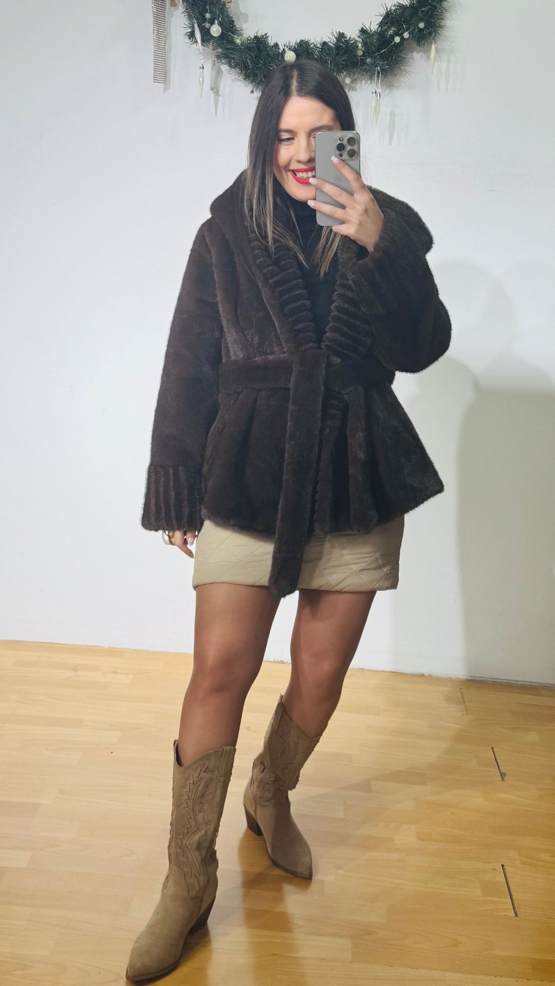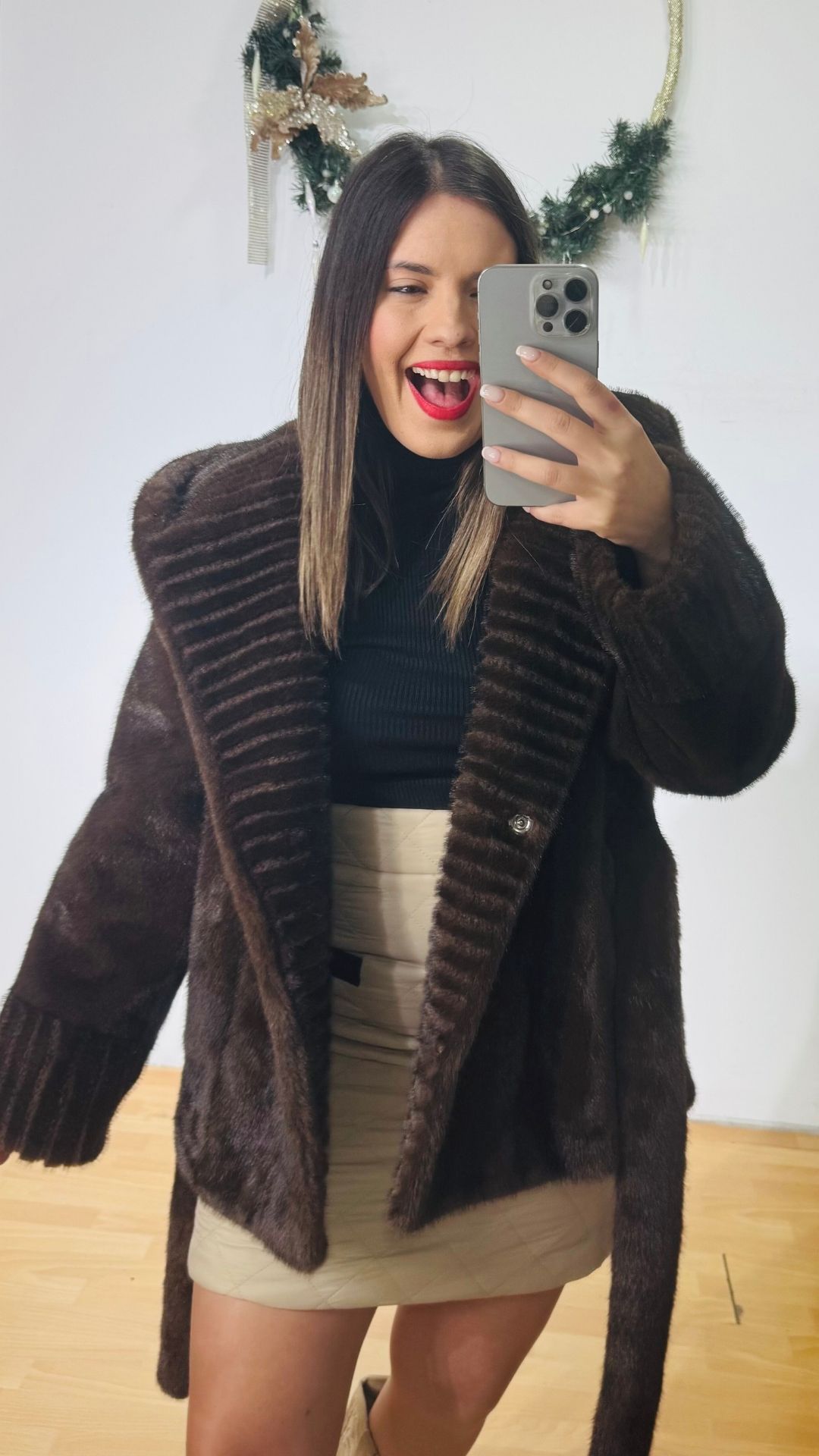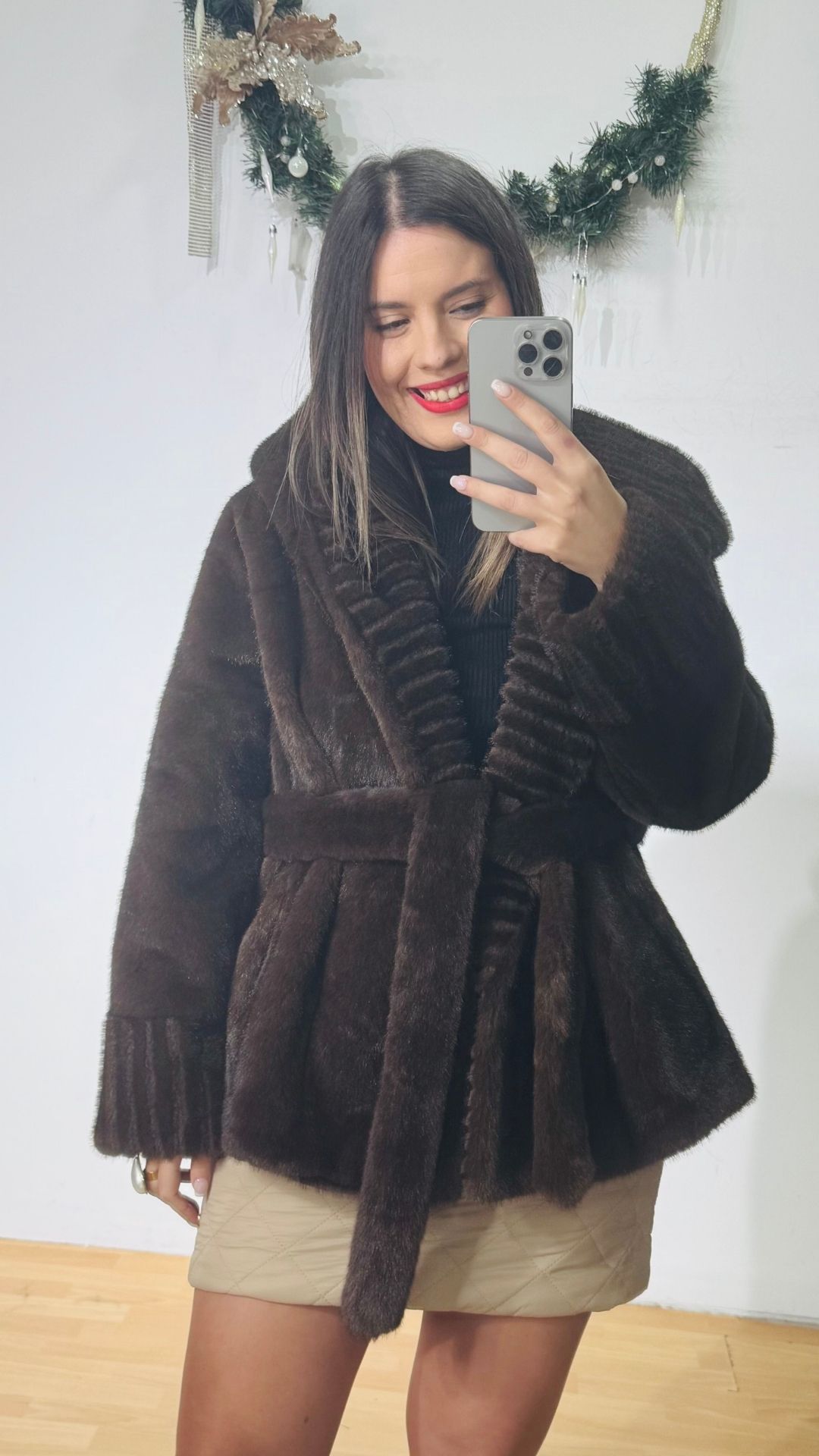 Πανωφόρι Γούνα με ενσωματωμένη κουκούλα που σχηματίζει πλούσιο γιακά.