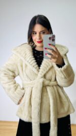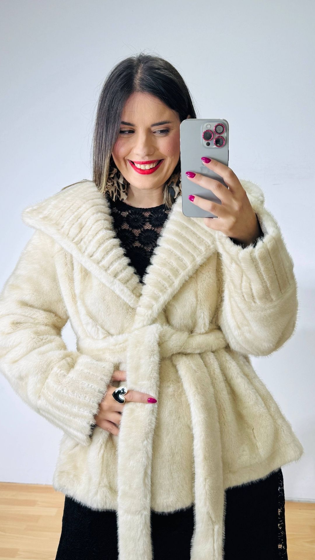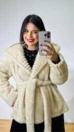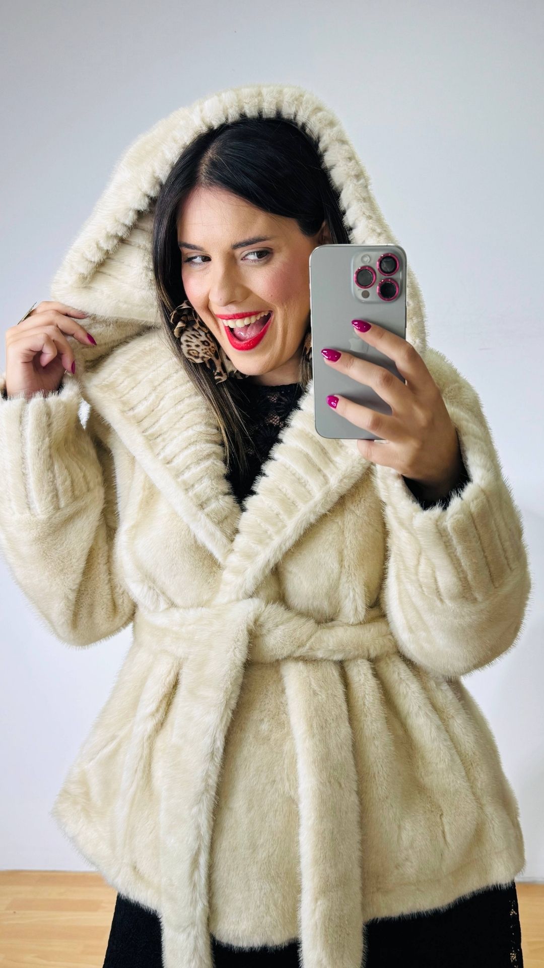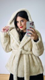 Πανωφόρι Γούνα με ενσωματωμένη κουκούλα που σχηματίζει πλούσιο γιακά.