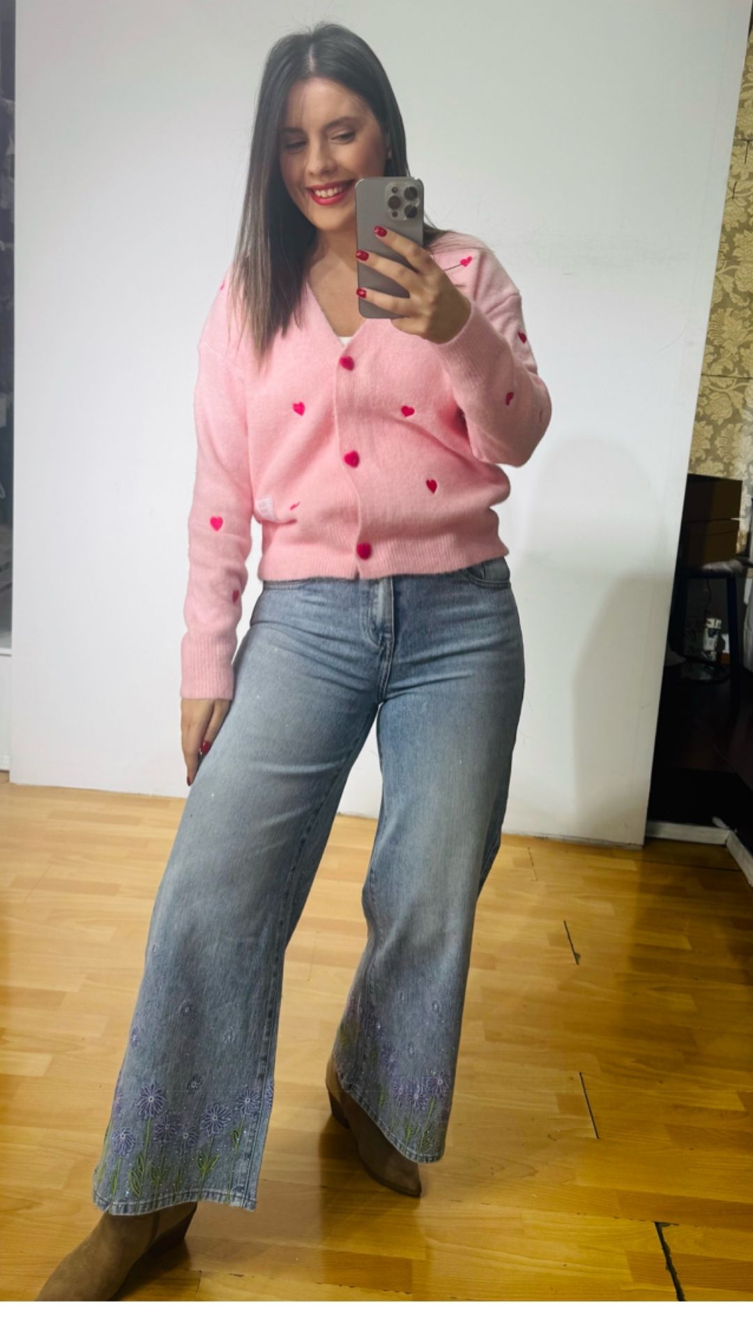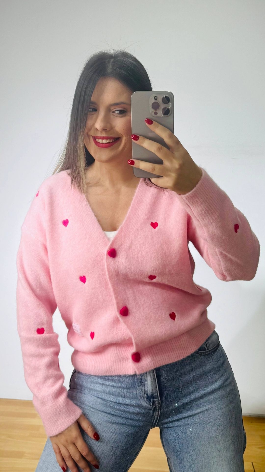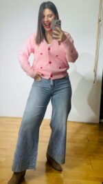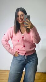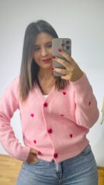 Zακέτα με κεντημένες καρδούλες και βελούδινα κουμπιά καρδιές