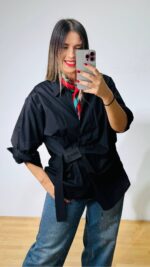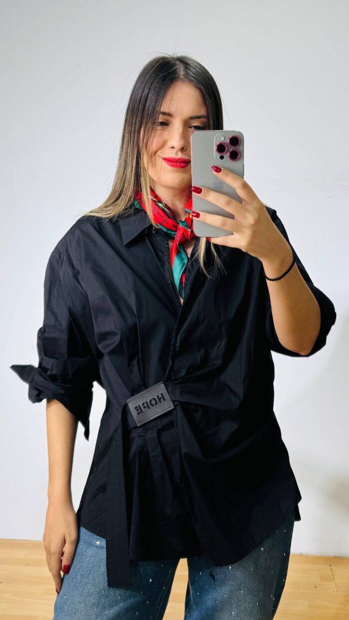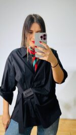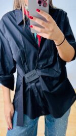 Πουκάμισο κρουαζέ -βαμβακερή ποπλίνα με ιδιαίτερο δέσιμο και δερμάτινη αγκράφα στο μπροστινό μέρος.