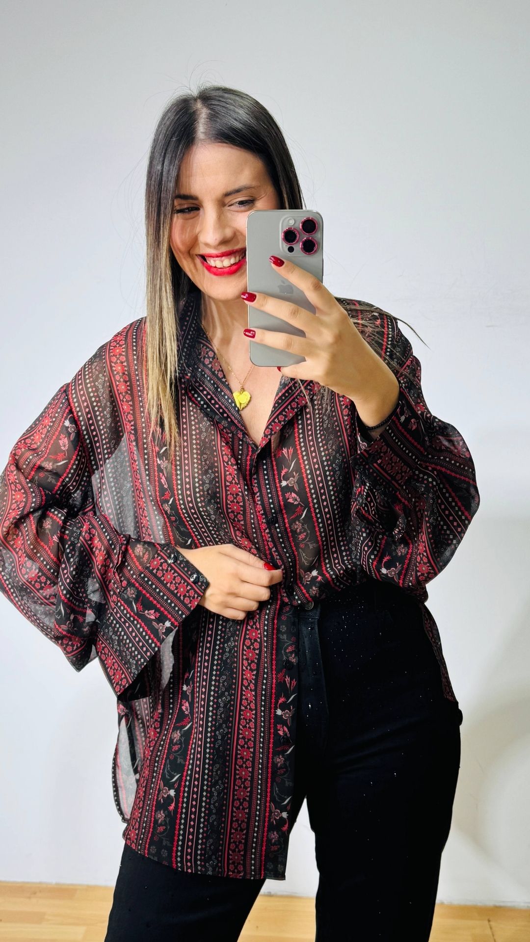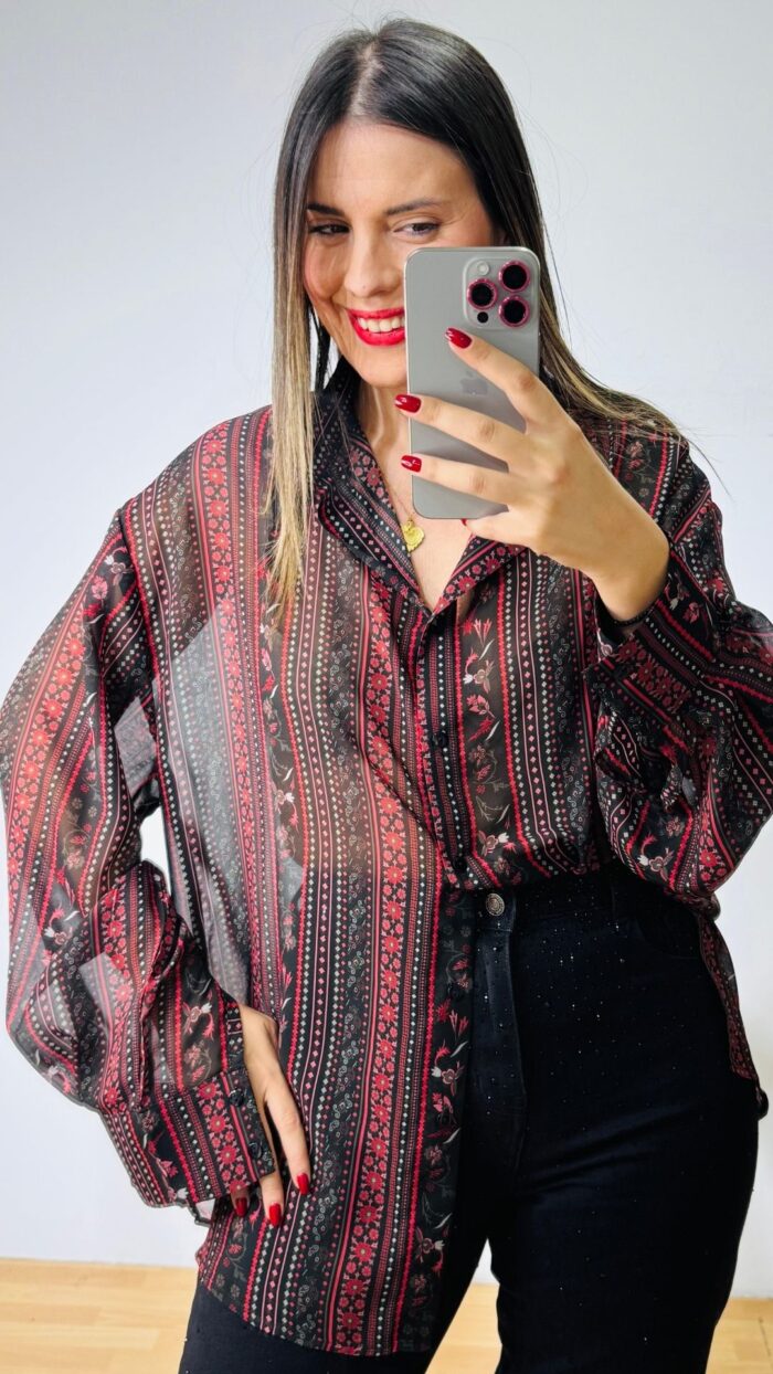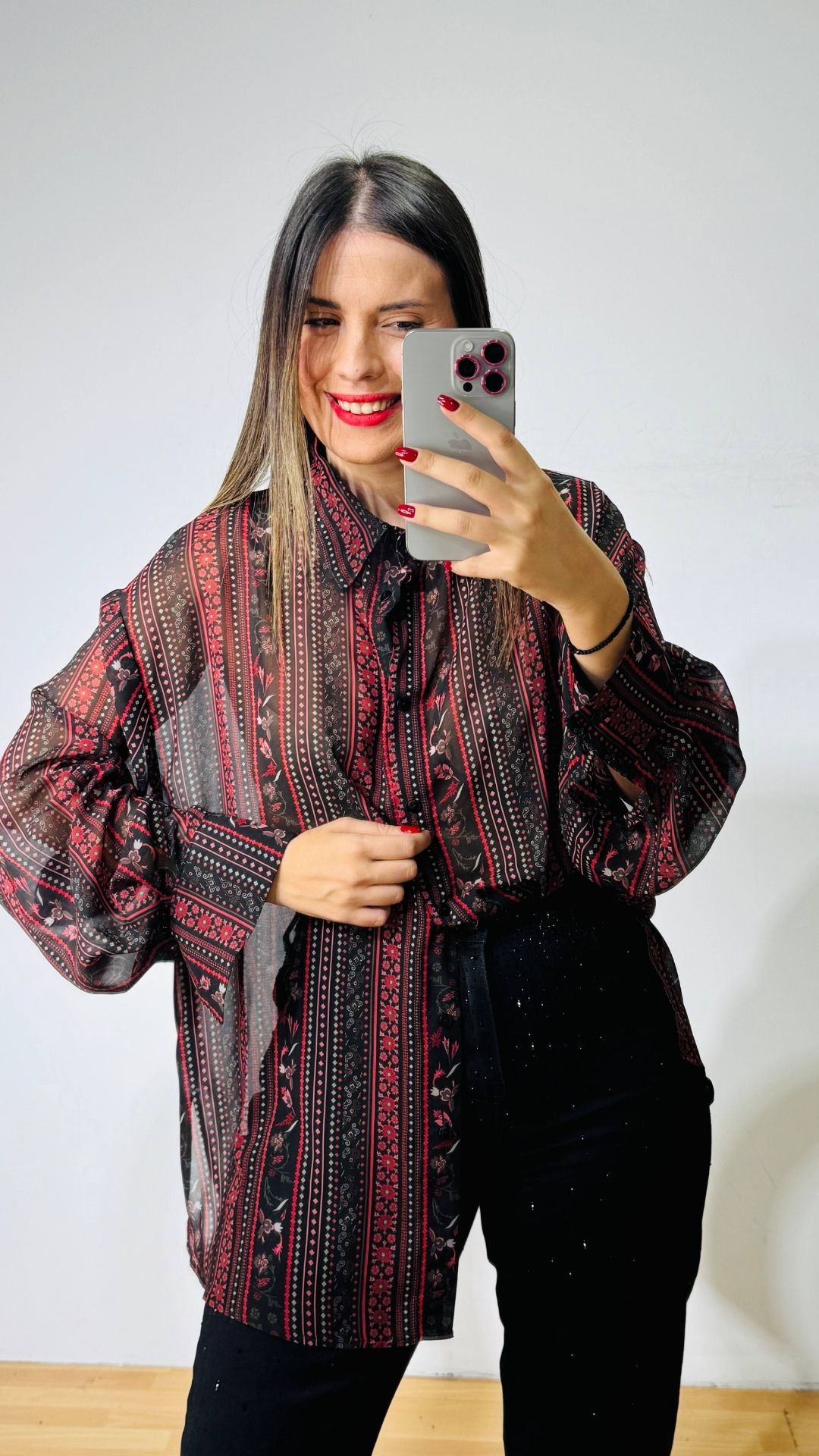 Πουκάμισο από εργοστασιακή οργάντζα . Κλείνει με κουπιά.