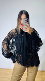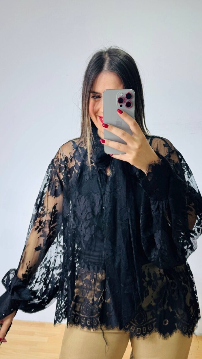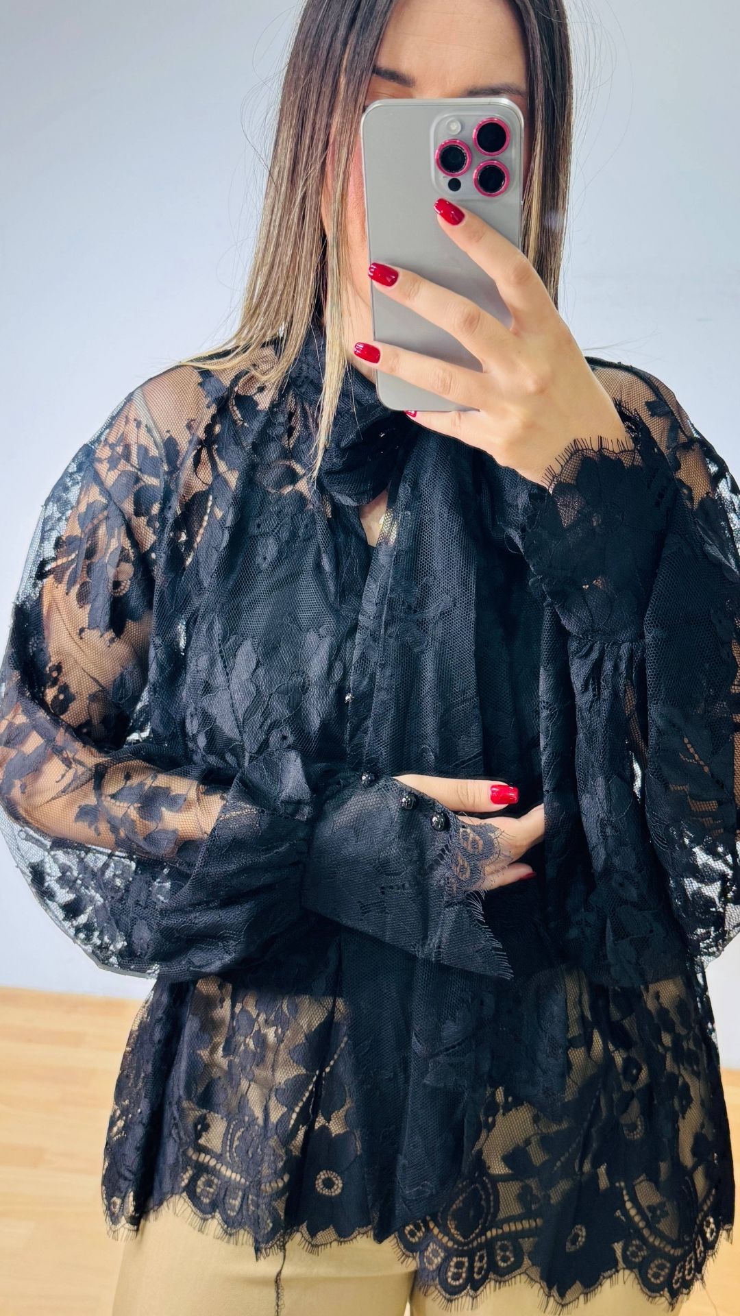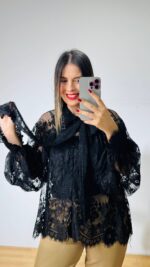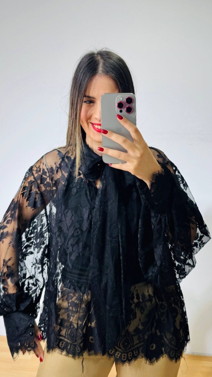Πουκάμισο από δαντέλα χειροποίητη με ενσωματωμένα φουλαρια που δένει στο λαιμό.