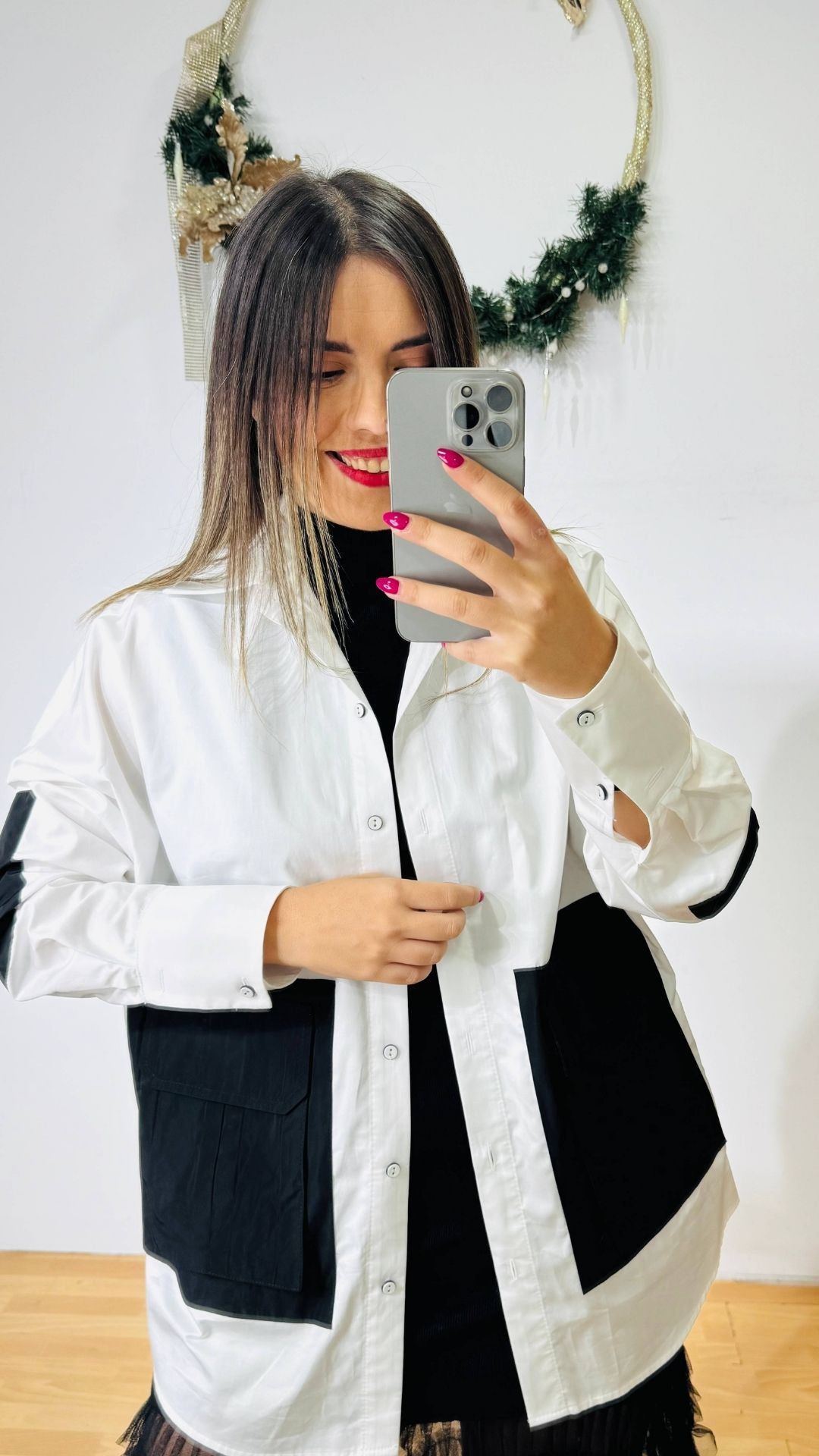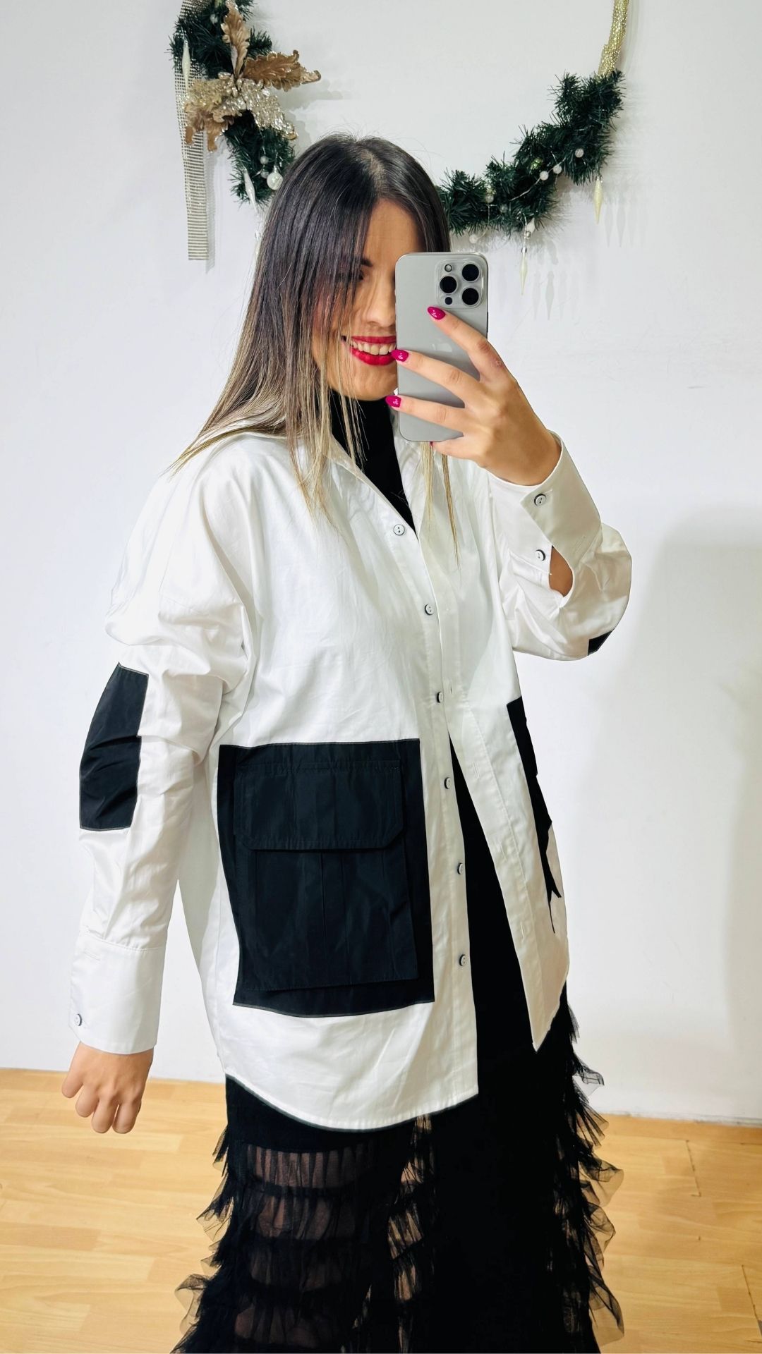 Πουκαμίσα βαμβακερή με εντυπωσιακό σχέδιο σε μαύρο χρώμα