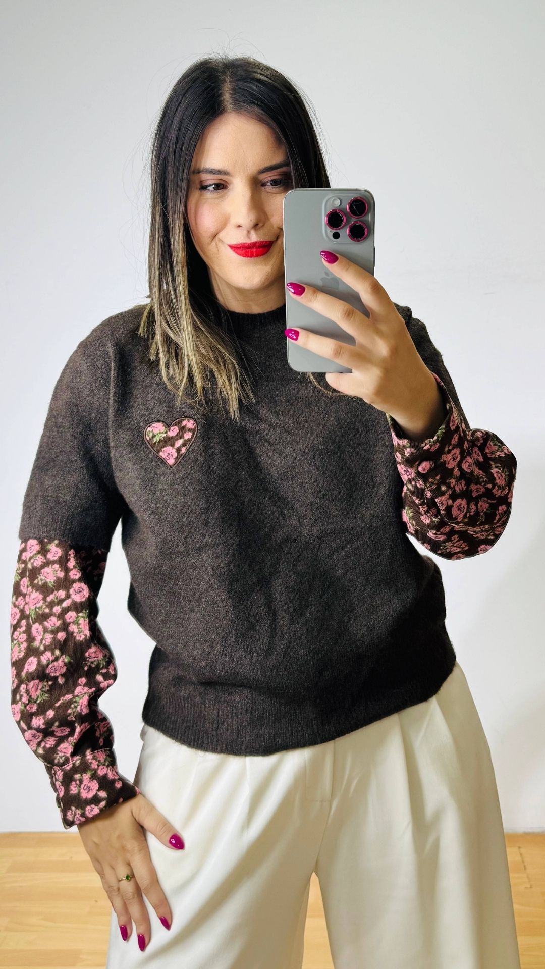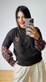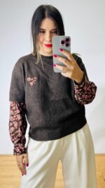 Πουλοβεράκι μοχέρ με λουλουδένια μανίκια από κοτλέ ύφασμα