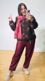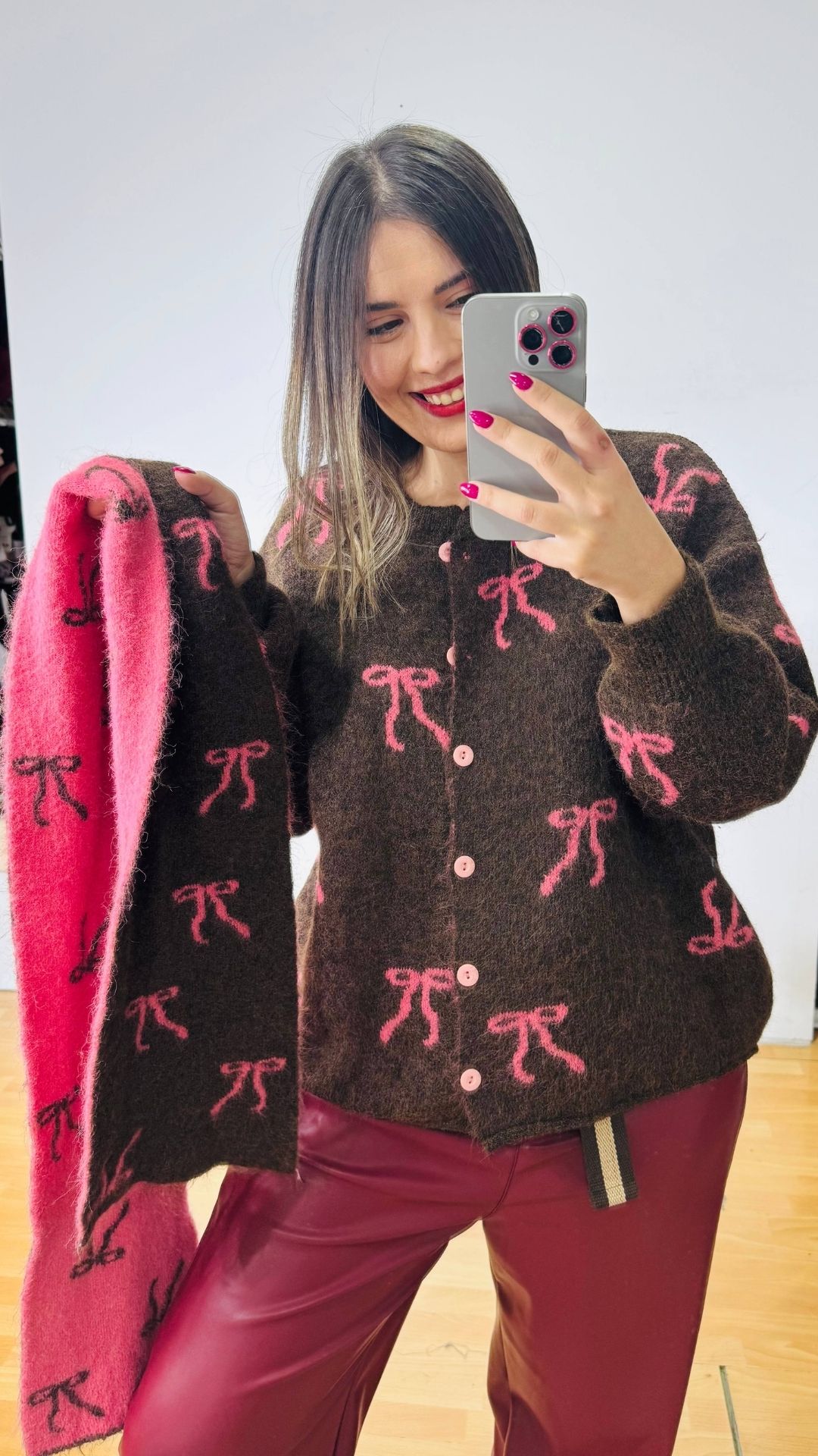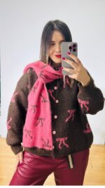 Zακέτα-Πουλόβερ μοχέρ /Κλείνει με κουμπιά και διαθέτει ασορτί κασκόλ δύο όψεων