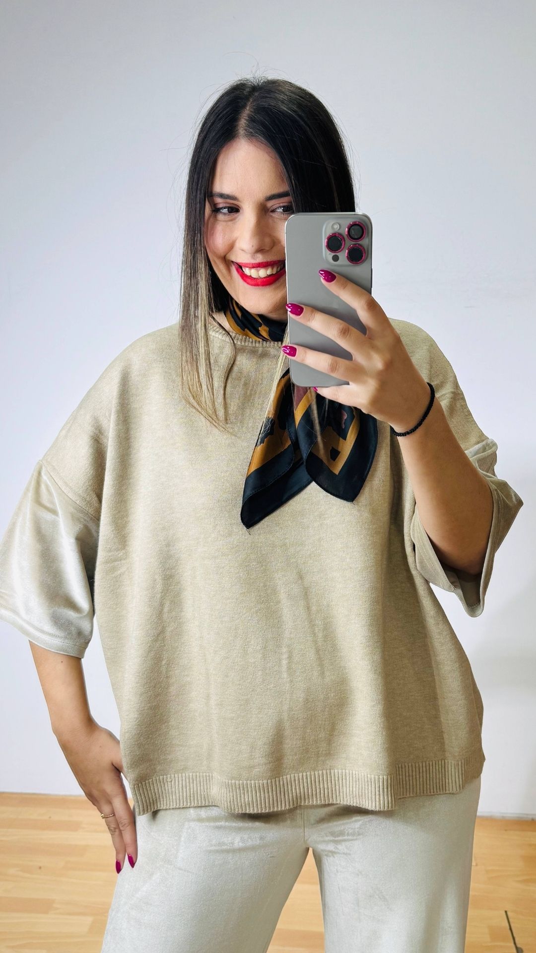 Σετ Αποτελείται από μπλούζα-πουλοβεράκι πλεκτό μαλακό μοχέρ με φάσια στα μανίκια από velvet  & Παντελόνα Velvet με ελαστικότητα και λάστιχο στην μέση