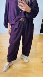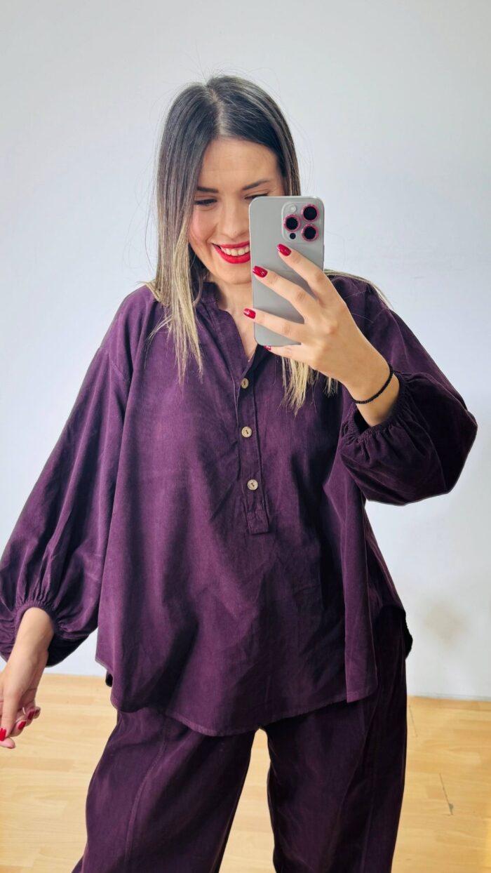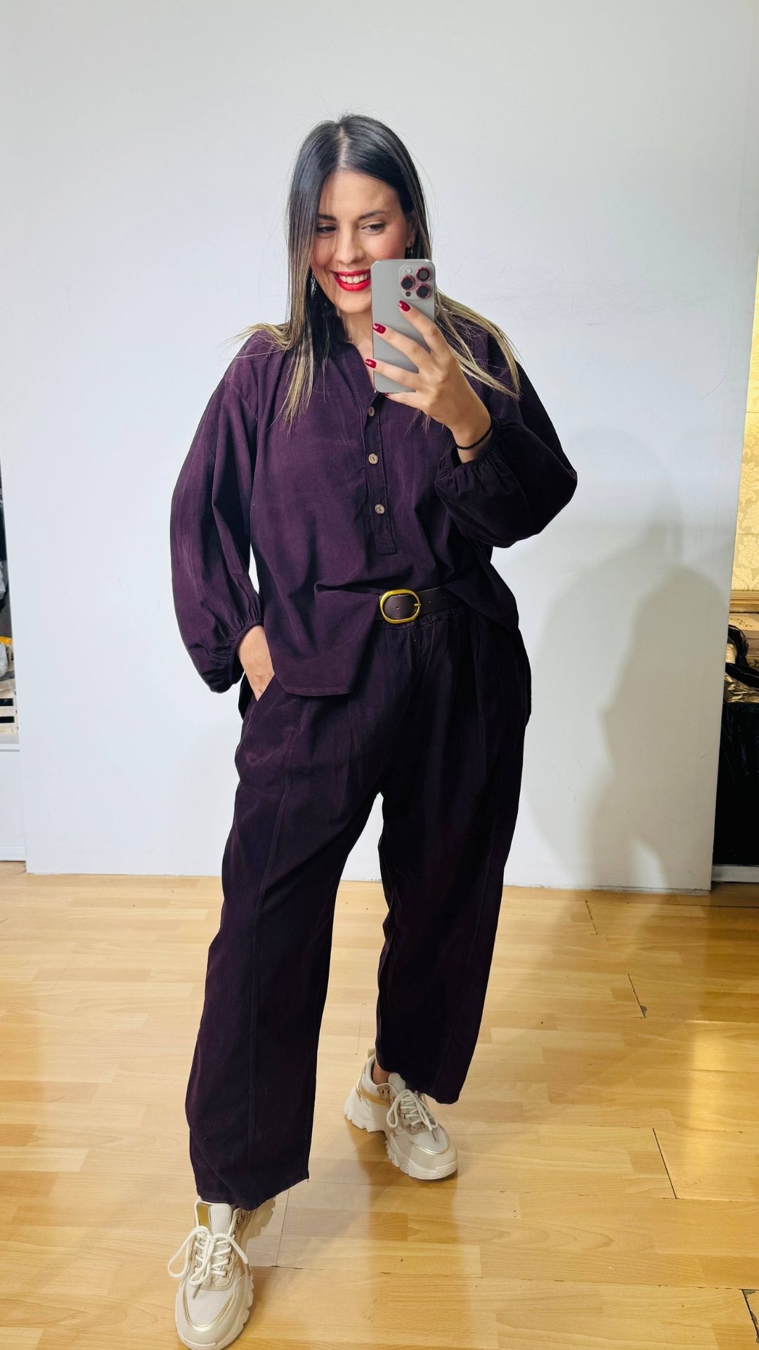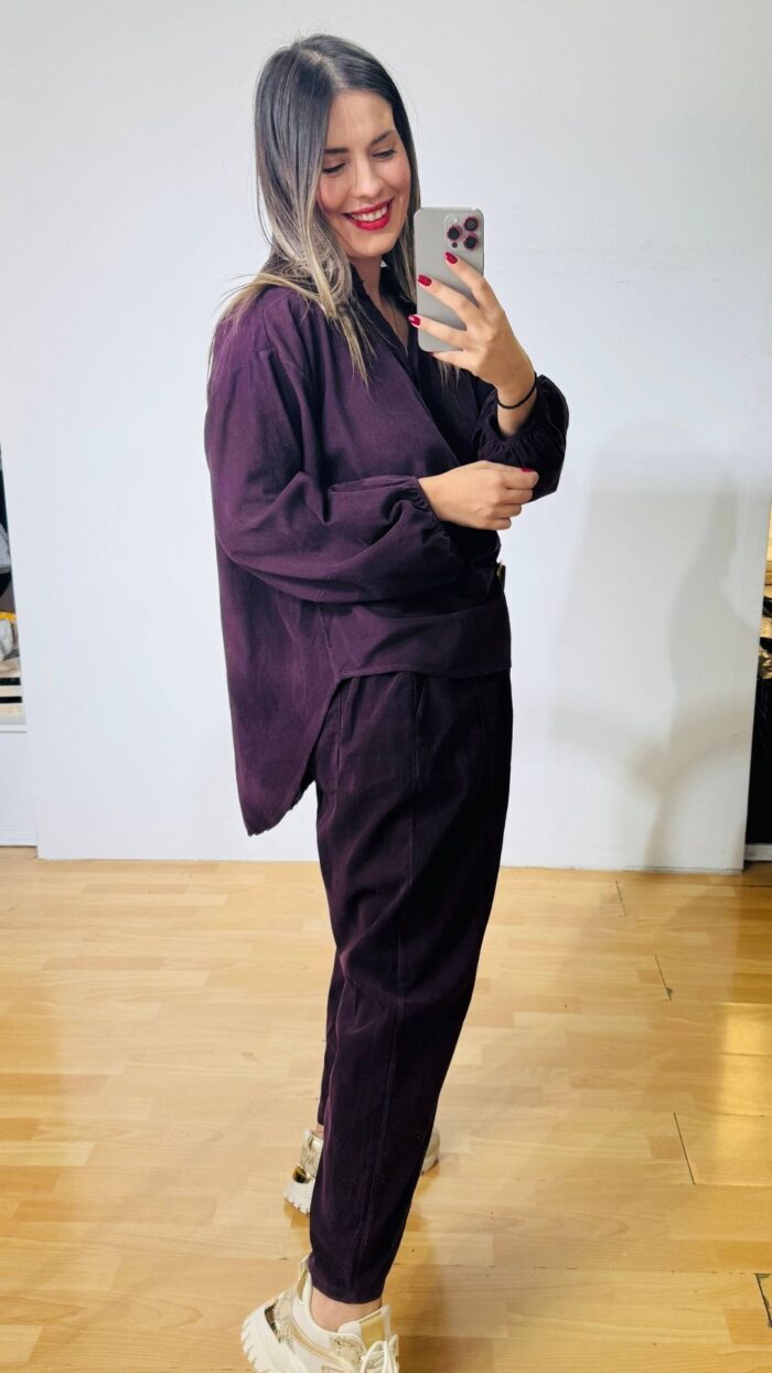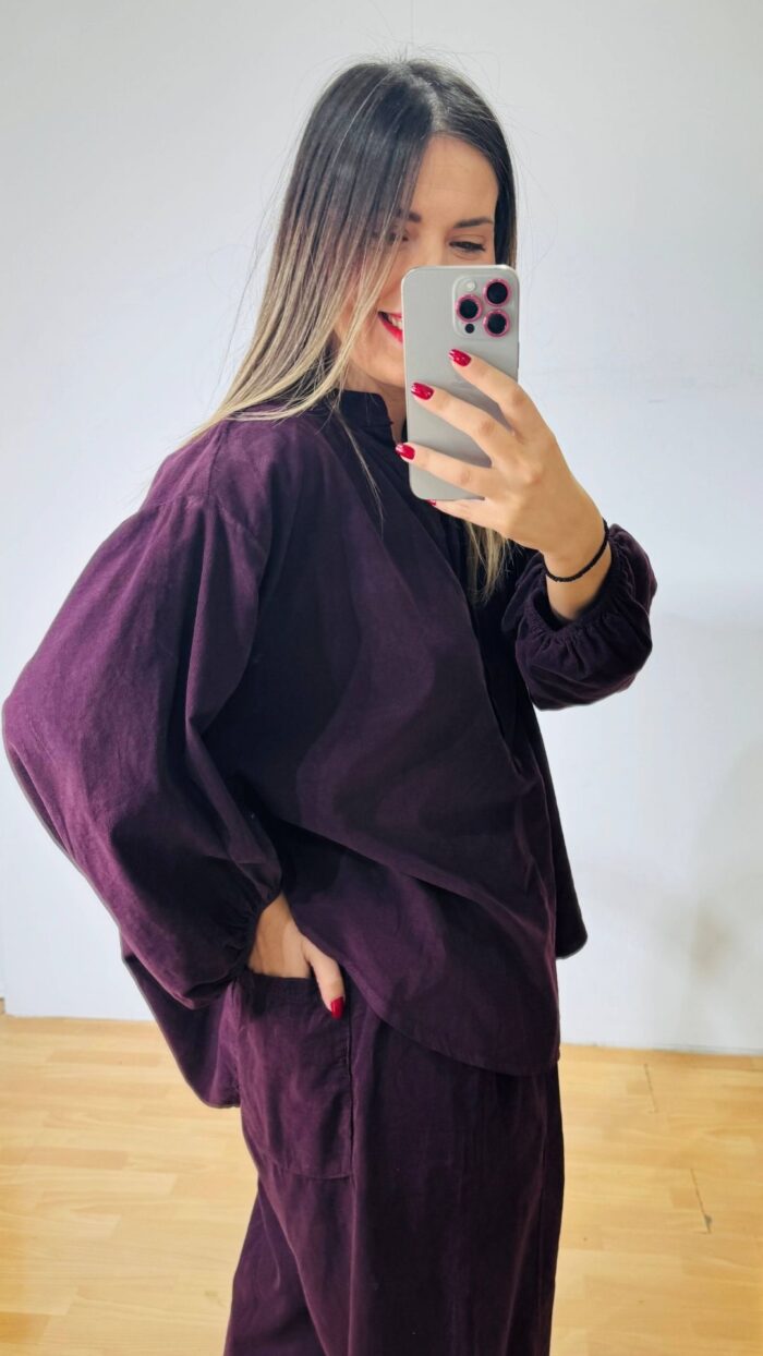 Σετ κοτλέ Αποτελείται από πουκαμίσα με μάο γιακά και κουμπάκια σε άνετη γραμμή & Παντελόνι τύπου σαλβάρι με λάστιχο στην μέση, πλαινές τσέπες.
