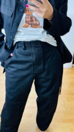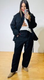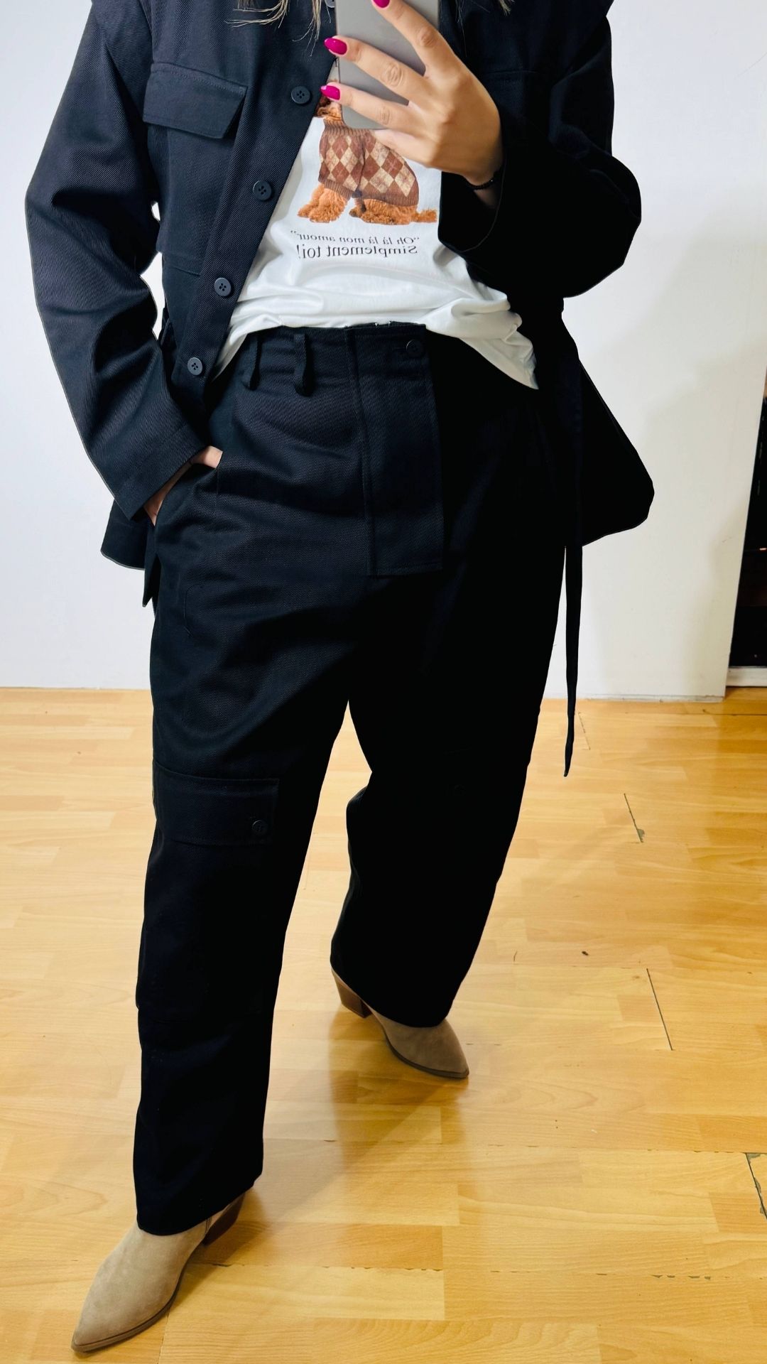 Παντελόνι boyfriend με πλαινές τσέπες και army τσέπες στο υψος στο γόνατο. Διαθέτει θυλάκια για ζώνη και ελαφριά πιέτα
