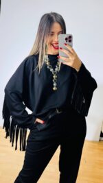 Σετ μοντάλ (βουτυρένια υφή). Αποτελείται από μπλούζα σε χαλαρή γραμμή με ενσωματωμένα κρόσια στην πλάτη και στα μανίκια  & Παντελόνι με λάστιχο στη μέση, πλαινές τσέπες και αποσπώμενη ζώνη ιμάντα.