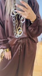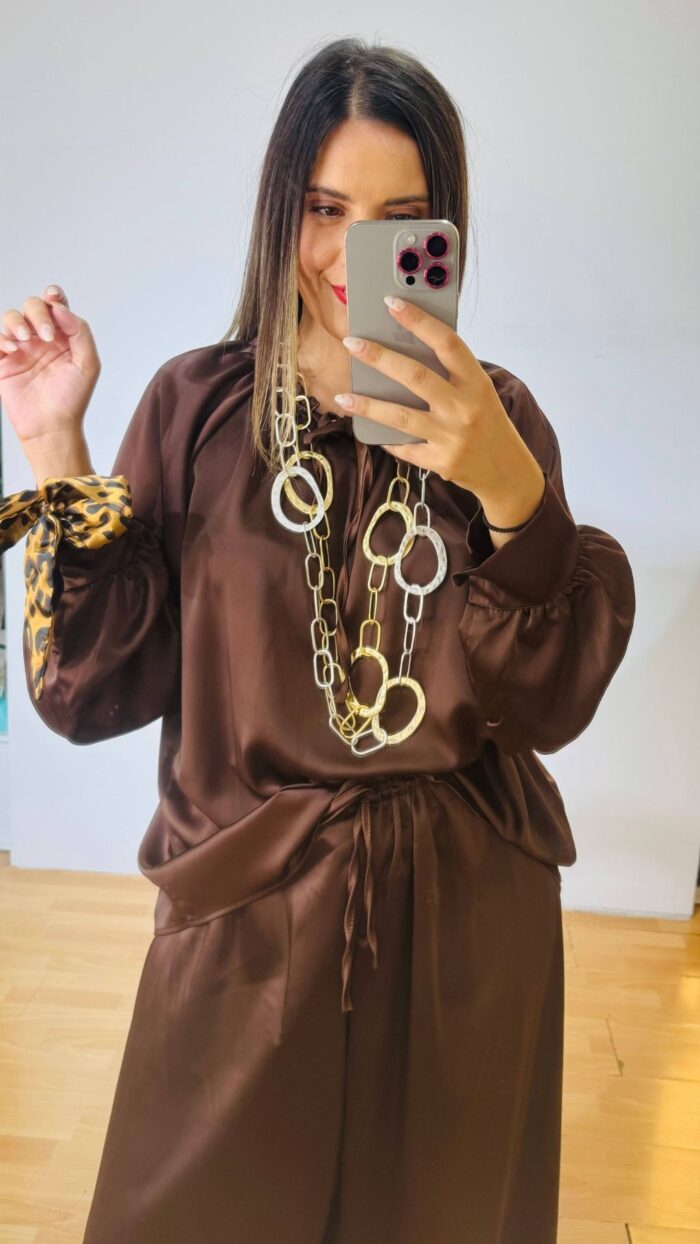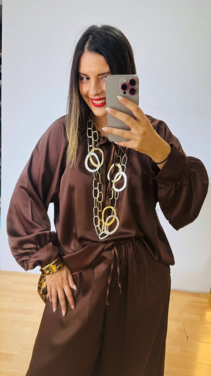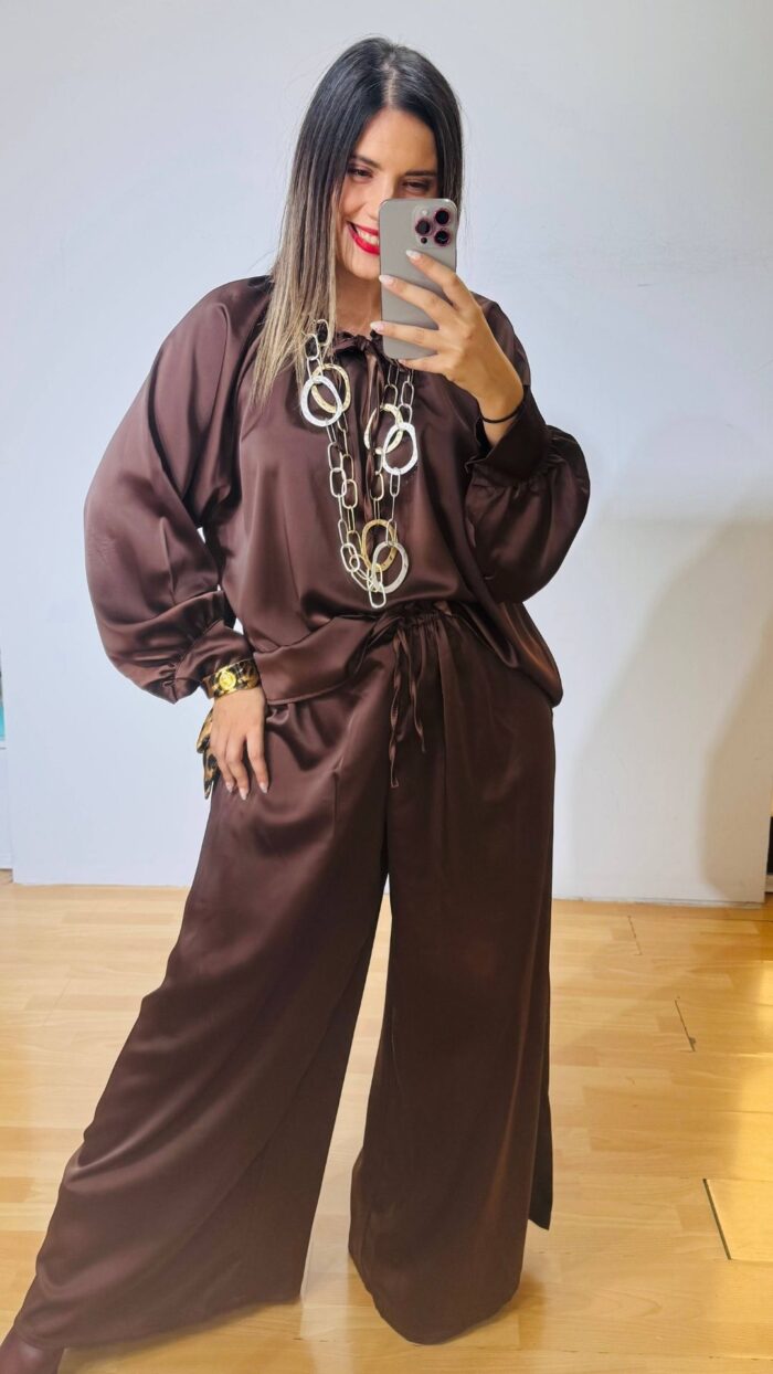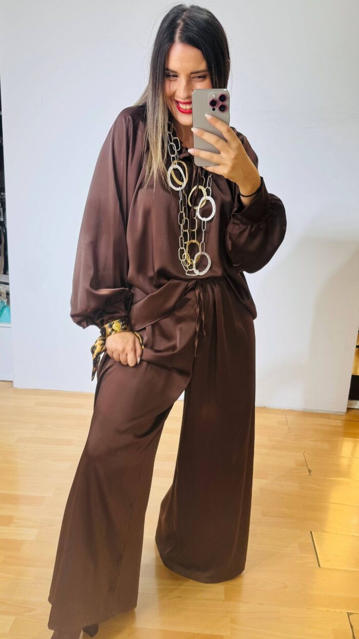 Σετ Σατέν Silky Touch/ Αποτελείται από πουκαμισα-τουνίκ σε άνετη γραμμή και παντελόνα με κορδονάκι στην μέση