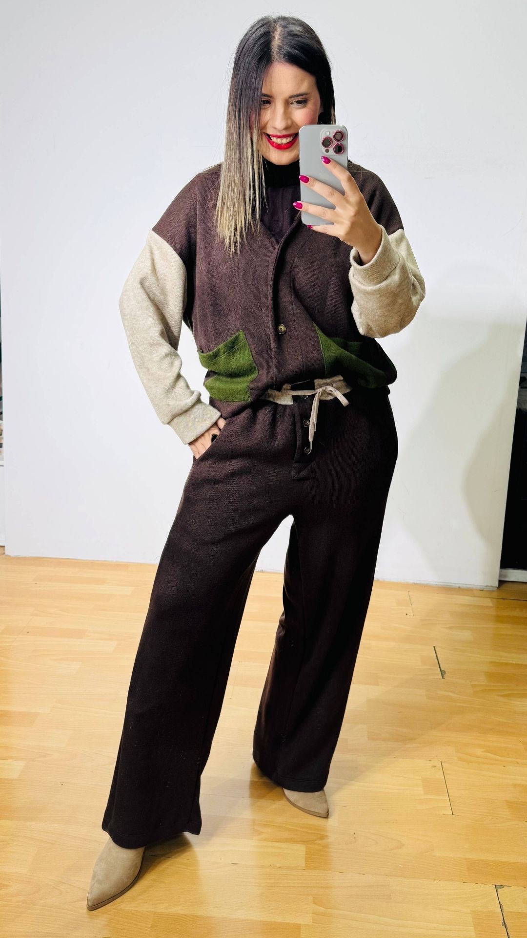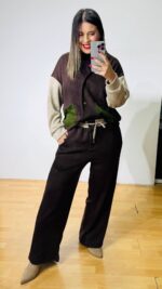 Σετ Πλεκτό -Αποτελείται από παντελόνα με λάστιχο στην μέση, ρυθμιζόμενο κορδονάκι στην μέση και πλαινές τσέπες & Ζακέτα που κλεινει με κουμπιά, διαθέτει τσέπες.